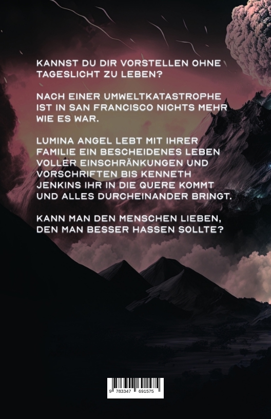 Kannst du dir vorstellen ohne Tageslicht zu leben?Nach einer Umweltkatastrophe ist in San Francisco nichts mehr wie es war. Lumina Angel lebt mit ihrer Familie ein bescheidenes Leben voller Einschränkungen und Vorschriften bis Kenneth Jenkins ihr in die Quere kommt und alles durcheinander bringt. Dabei werden ihr bisher verwehrte Geheimnisse aufgedeckt und Lumina steht vor einer schwierigen Entscheidung. Kann man den Menschen lieben, den man besser hassen sollte?