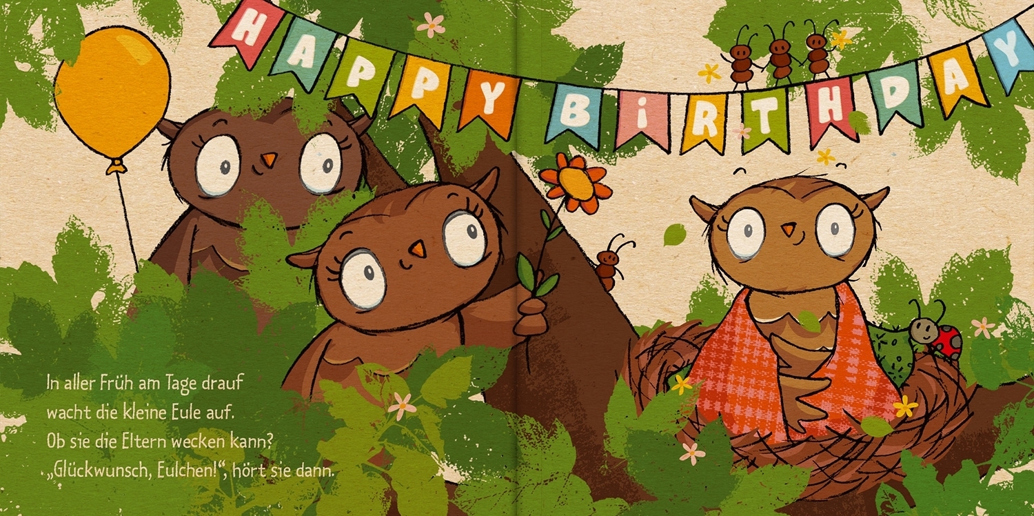 Herzlichen Glückwunsch! Die kleine Eule ist ganz aufgeregt. Morgen hat sie endlich Geburtstag. In der Früh gratulieren natürlich die Eulen-Eltern mit Kuchen und Geschenken. Auch der Spatz will die kleine Eule besuchen. Und er ist nicht allein, auch Oma, Opa und viele Gäste kommen und singen der kleinen Eule ein Geburtstagsständchen - natürlich gereimt. Ach, wenn doch jeden Tag Geburtstag wäre!