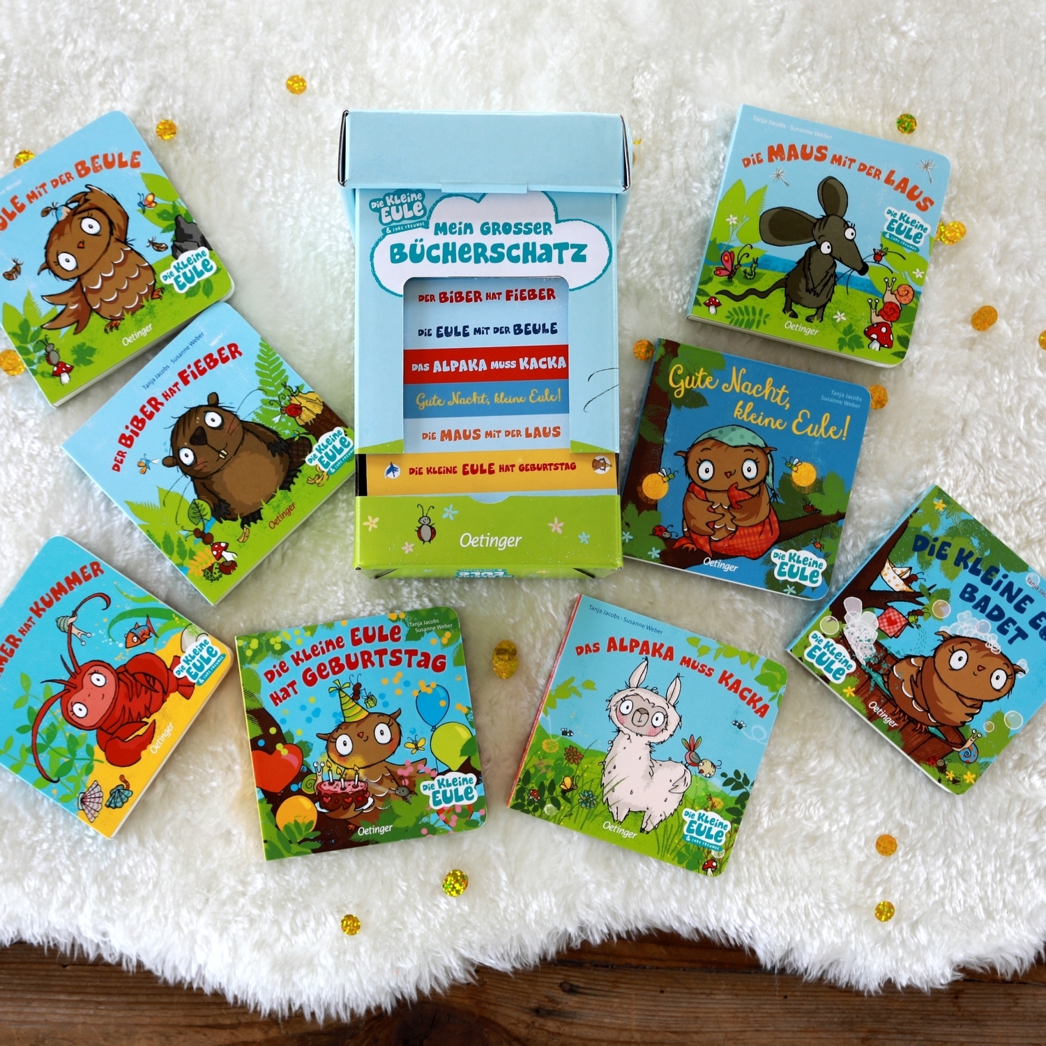 | Schlagworte | 8 Pappbilderbücher • Das Alpaka muss Kacka • Der Biber hat Fieber • Der Hummer hat Kummer • Die Eule mit der Beule • Die kleine Eule badet • Die kleine Eule hat Geburtstag • Die kleine Eule und ihre Freunde • Die Maus mit der Laus • erste Bibliothek • Geburtstagsgeschenk • Geschenk zur Geburt • Gute Nacht, kleine Eule! • Kinderbuch ab 18 Monaten • Kleinkind • Minibücher • Pappbilderbuch Schuber |