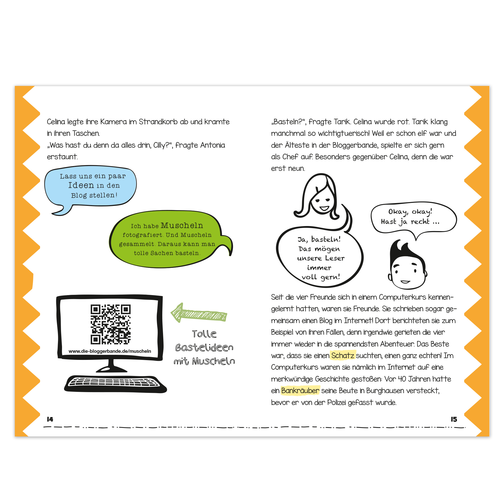 - Ein crossmediales Leseerlebnis und Comic-Roman mit Klick: Über QR-Codes im Buch landet man auf weitere spannende, kindgerechte Artikel im Internet-Blog der Bloggerbande.