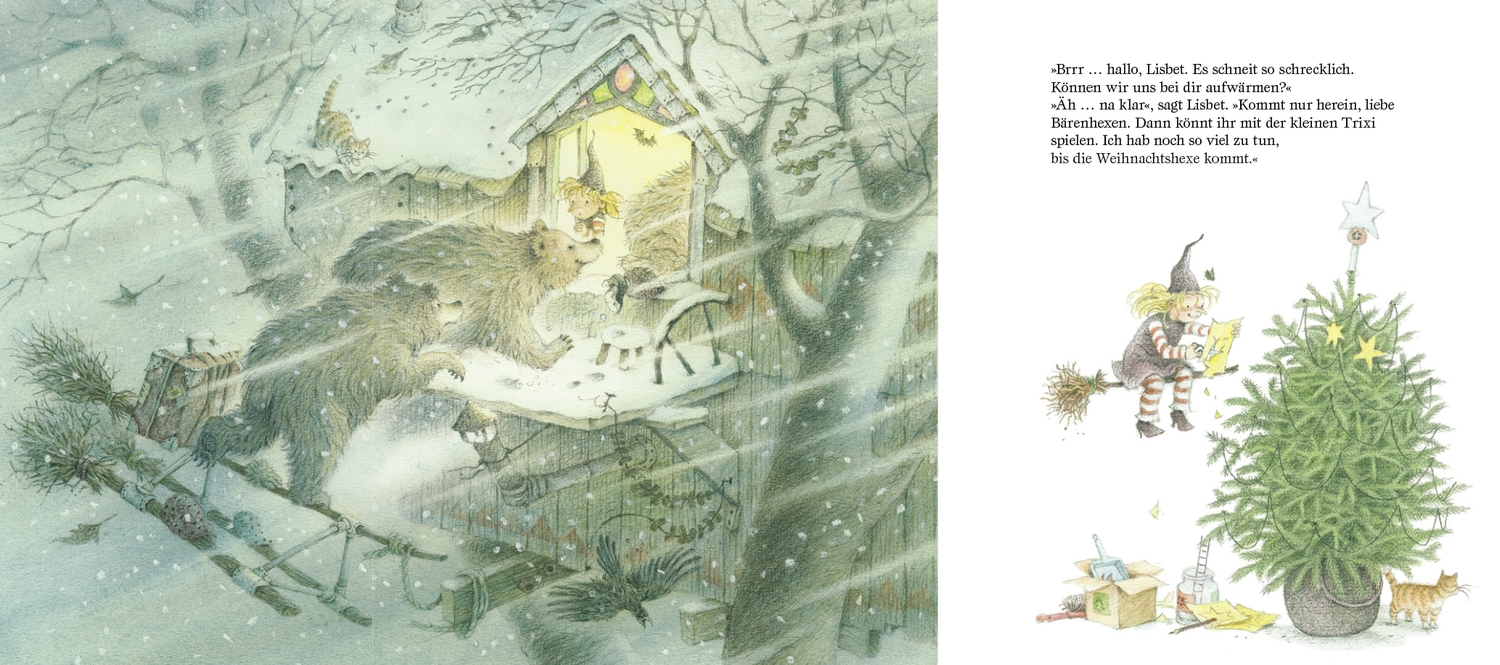 Heute ist Heiligabend! Und es gibt noch sooo viel zu tun! Die kleine Hexe Lisbet muss noch den Tannenbaum schmücken und Plätzchen backen. Und ausgerechnet jetzt bittet die Weihnachtshexe sie, auf Hexenkind Trixi aufzupassen. Dabei ist Lisbet doch mit ihren Weihnachtsvorbereitungen vollauf beschäftigt, damit alles fertig ist, wenn die Weihnachtshexe am späten Abend wieder zurückkommt! Gut, dass sie wenigstens ihren Hexenbesen hat und manches im Flug erledigen kann.