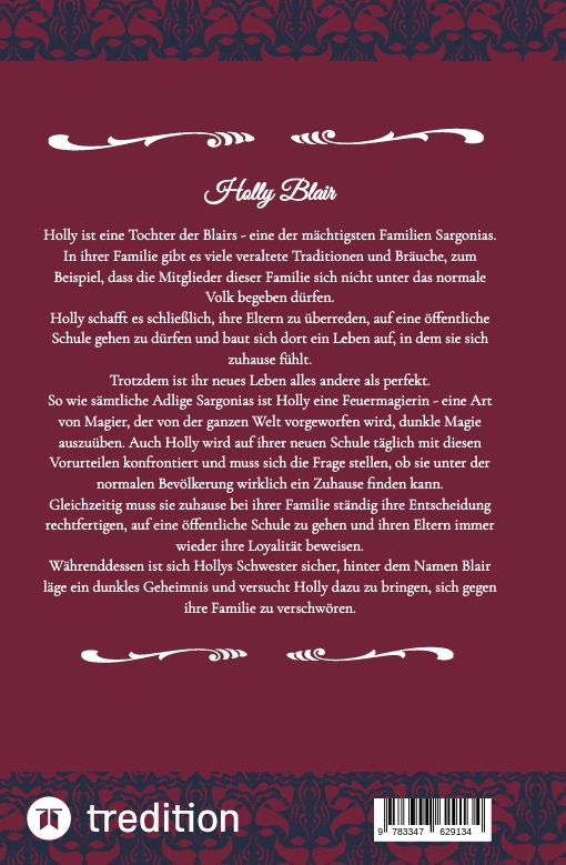 Holly ist eine Tochter der Blairs - eine der mächtigsten Familien Sargonias. In ihrer Familie gibt es viele veraltete Traditionen und Bräuche, zum Beispiel, dass die Mitglieder dieser Familie sich nicht unter das normale Volk begeben dürfen. Holly schafft es schließlich, ihre Eltern zu überreden, auf eine öffentliche Schule gehen zu dürfen und baut sich dort ein Leben auf, in dem sie sich zuhause fühlt. Trotzdem ist ihr neues Leben alles andere als perfekt.So wie sämtliche Adlige Sargonias ist Holly eine Feuermagierin - eine Art von Magier, der von der ganzen Welt vorgeworfen wird, dunkle Magie auszuüben. Auch Holly wird auf ihrer neuen Schule täglich mit diesen Vorurteilen konfrontiert und muss sich die Frage stellen, ob sie unter der normalen Bevölkerung wirklich ein Zuhause finden kann.Gleichzeitig muss sie zuhause bei ihrer Familie ständig ihre Entscheidung rechtfertigen, auf eine öffentliche Schule zu gehen und ihren Eltern immer wieder ihre Loyalität beweisen.Währenddessen ist sich Hollys Schwester sicher, hinter dem Namen Blair läge ein dunkles Geheimnis und versucht Holly dazu zu bringen, sich gegen ihre Familie zu verschwören.