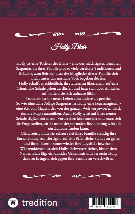 Holly ist eine Tochter der Blairs - eine der mächtigsten Familien Sargonias. In ihrer Familie gibt es viele veraltete Traditionen und Bräuche, zum Beispiel, dass die Mitglieder dieser Familie sich nicht unter das normale Volk begeben dürfen. Holly schafft es schließlich, ihre Eltern zu überreden, auf eine öffentliche Schule gehen zu dürfen und baut sich dort ein Leben auf, in dem sie sich zuhause fühlt. Trotzdem ist ihr neues Leben alles andere als perfekt.So wie sämtliche Adlige Sargonias ist Holly eine Feuermagierin - eine Art von Magier, der von der ganzen Welt vorgeworfen wird, dunkle Magie auszuüben. Auch Holly wird auf ihrer neuen Schule täglich mit diesen Vorurteilen konfrontiert und muss sich die Frage stellen, ob sie unter der normalen Bevölkerung wirklich ein Zuhause finden kann.Gleichzeitig muss sie zuhause bei ihrer Familie ständig ihre Entscheidung rechtfertigen, auf eine öffentliche Schule zu gehen und ihren Eltern immer wieder ihre Loyalität beweisen.Währenddessen ist sich Hollys Schwester sicher, hinter dem Namen Blair läge ein dunkles Geheimnis und versucht Holly dazu zu bringen, sich gegen ihre Familie zu verschwören.