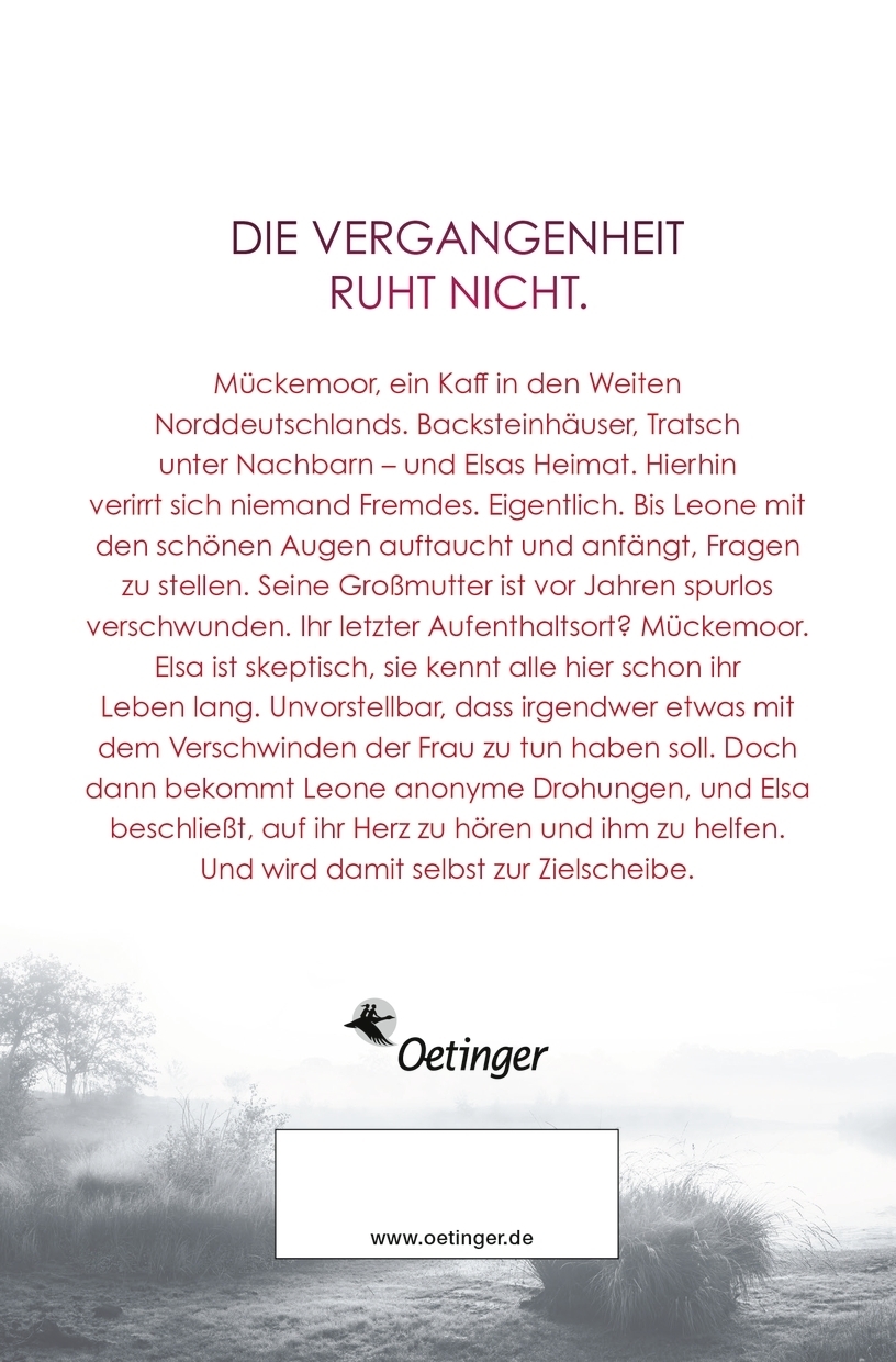Eigentlich verirrt sich kein Fremder nach Mückemoor. Eigentlich. Doch dann taucht Leone auf, mit einem Kopf voller wilder Locken und vielen Fragen. Er will herausfinden, was mit seiner Großmutter geschehen ist, die vor Jahrzehnten als Gastarbeiterin nach Mückemoor kam und nie wieder in ihre Heimat nach Italien zurückgekehrt ist. Elsa beschließt zu helfen. Doch schnell wird klar, dass irgendjemand im Dorf kein Interesse daran hat, dass die vergangenen Geheimnisse ans Licht kommen. Elsa kennt alle Dorfbewohner*innen hier schon ihr Leben lang. Ist es wirklich denkbar, dass eine*r von ihnen etwas mit dem Verschwinden von Maria Greco zu tun hat?