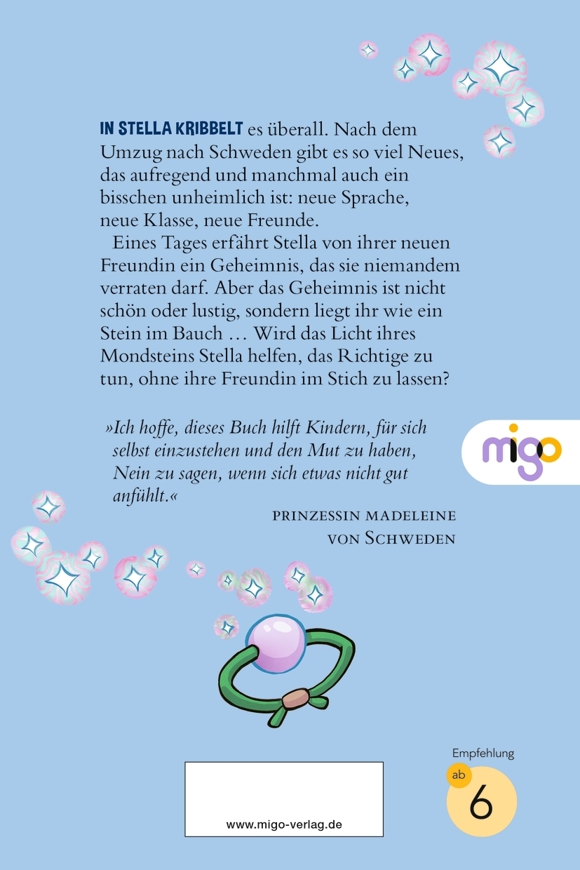 | Schlagworte | Alltag • als Gesprächsanlass • Angst • Aufklärung • Ausbeutung • Bücher von Promis • Familie • Freundschaft • Gefühle • Gefühle Kinder • Geheimnis • Gespräch • Grundschule • Integrität • Kinderbuch ab 6 • Kinderbücher ab 6 Jahre • Kinderrechte • Kinderschutz • Kindesmissbrauch • Kommunikation • Körperliche Unversehrtheit • Missbrauch • Mondstein • Mut • Mutmachbuch • negative Gefühle • Nein sagen • Neue Freunde • Prinzessin Madeleine • Privatsphäre • Schweden • Selbstbewusstsein • Selbstwertgefühl • sexualisierte Gewalt gegen Kinder • Sexualität • Umzug • Vertrauen • Vorlesebuch • Vorlesen • World Childhood Foundation |