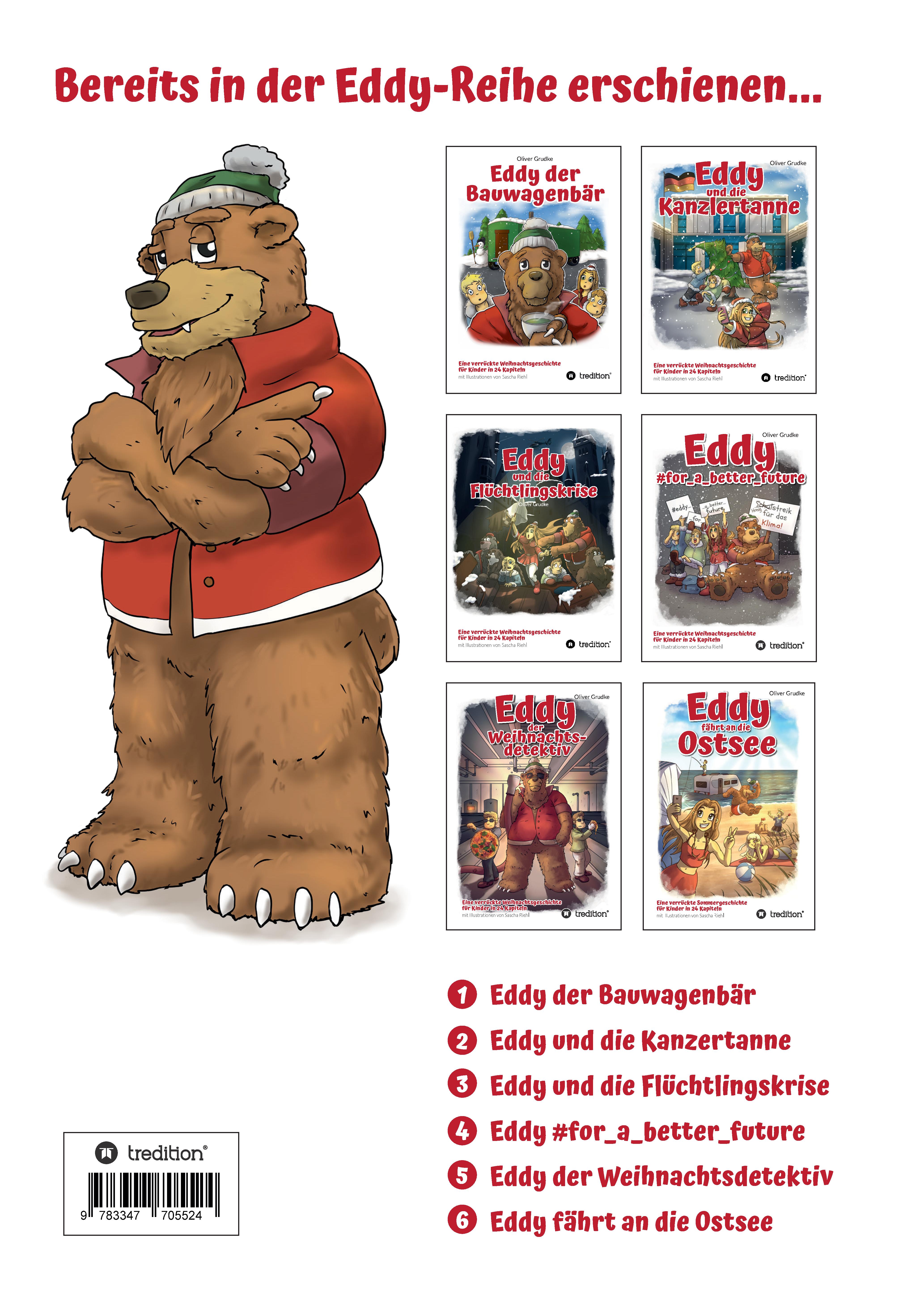 Eddy, der sprechende Bär erlebt mit seinen Freunden tolle Abenteuer. Dabei werden aktuelle Themen Kindgerecht dargestellt. Im Weihnachtsdedektiv sind Eddy und seine Freunde geheimen Dieben auf der Spur.