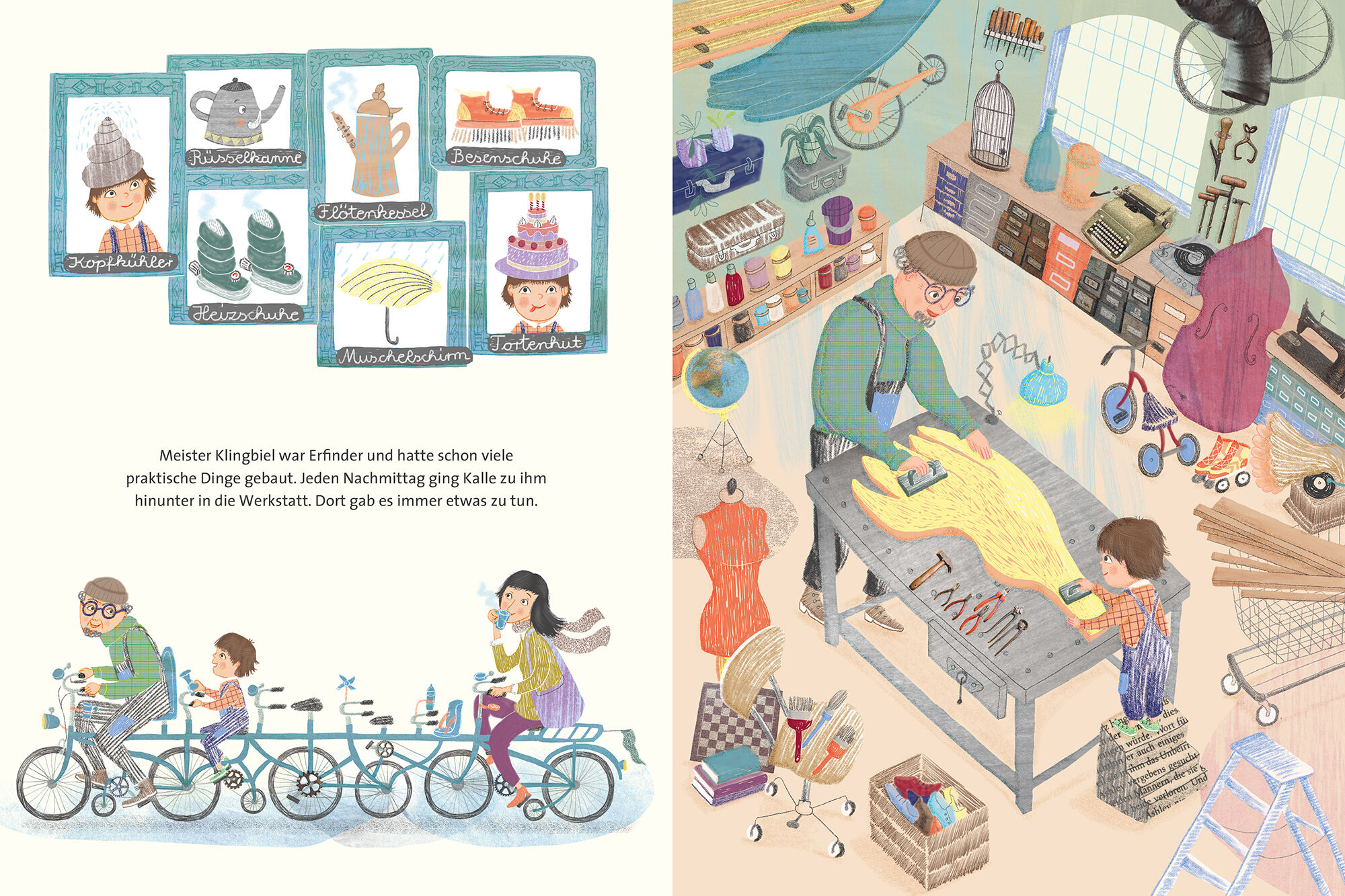 Kalle wohnt mit seiner Mutter in einem gemütlichen Haus, ganz oben unter dem Dach. Unten hat Meister Klingbiel seine Werkstatt. Er ist Erfinder und hat schon viele praktische Dinge gebaut. Jeden Nachmittag ist Kalle bei ihm und gemeinsam tüfteln und basteln sie. Doch Meister Klingbiel ist nicht mehr der Jüngste und möchte bald seine Werkstatt für immer schließen. Bevor er das tut, will er aber noch etwas erfinden, das alles Bisherige übertrifft: Eine Klangmaschine, auf der die schönsten Melodien ertönen, die die Welt je gehört hat. Und Kalle soll ihm dabei behilflich sein. Mit Feuereifer machen sie sich ans Werk, bis Meister Klingbiel eines Tages erkrankt und nicht mehr in die Werkstatt kommt. Was soll nun aus seiner letzten und größten Erfindung werden?
