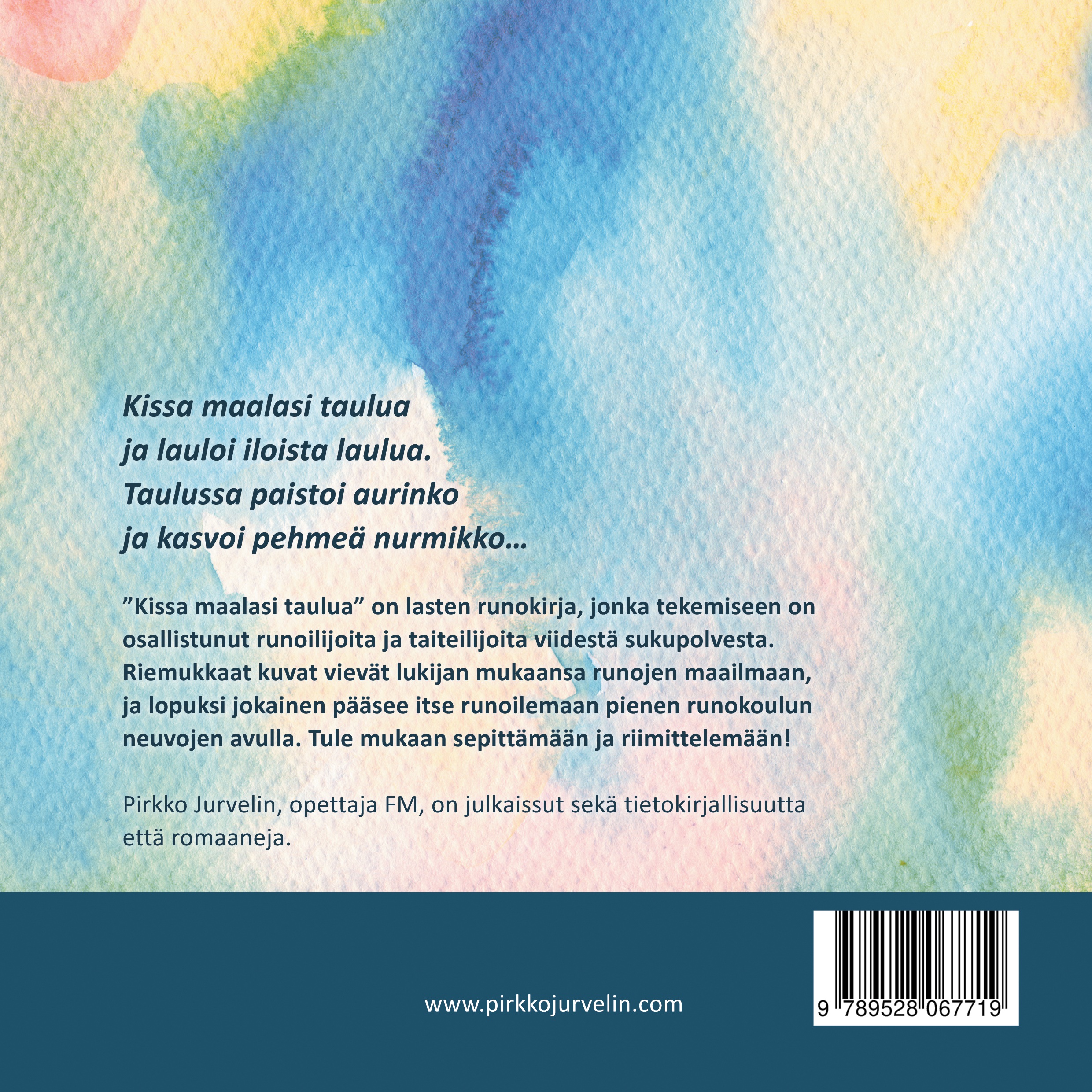 Kissa maalasi taulua on lasten runokirja, jonka tekemiseen on osallistunut runoilijoita ja taiteilijoita viidestä sukupolvesta. Riemukkaat kuvat vievät lukijan mukaansa runojen maailmaan, ja lopuksi jokainen pääsee itse runoilemaan pienen runokoulun neuvojen avulla. Tule mukaan sepittämään ja riimittelemään!