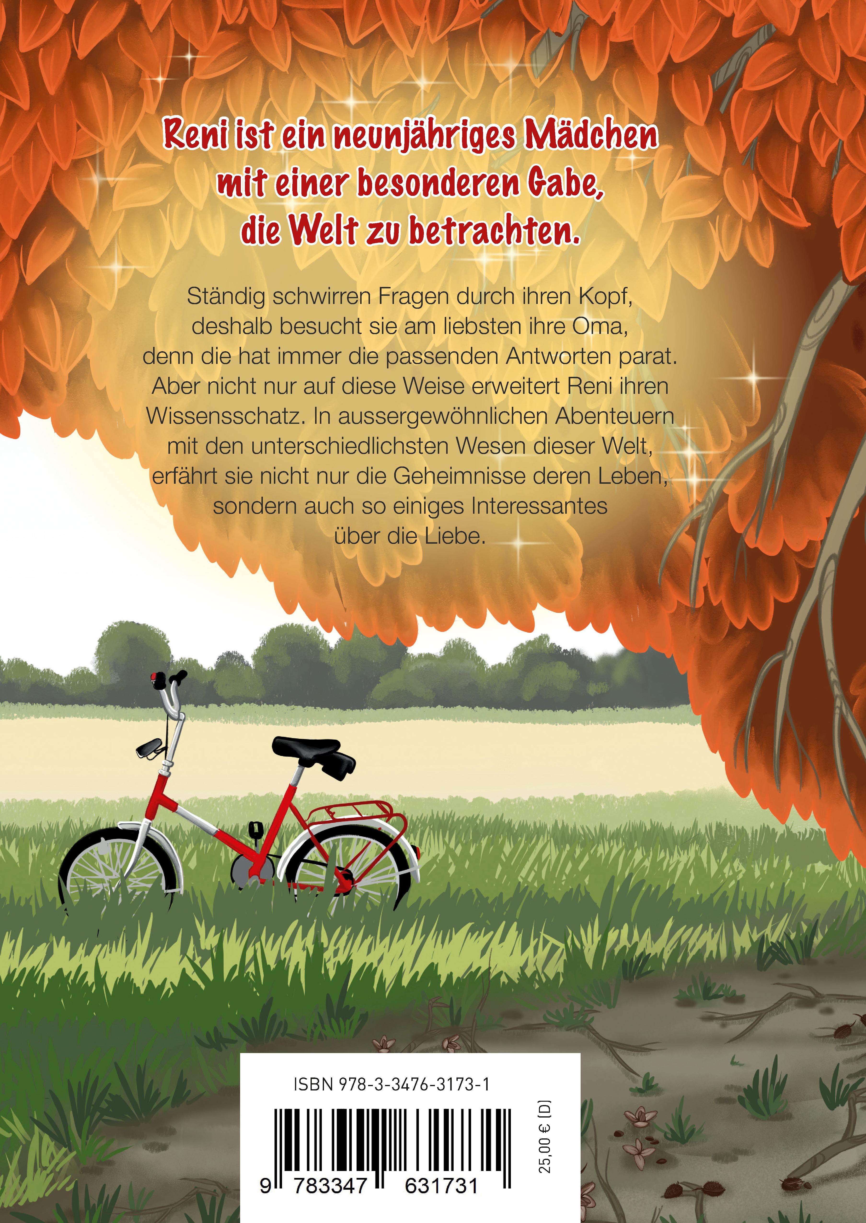 Reni ist ein neunjähriges Mädchen mit einer besonderen Gabe, die Welt zu betrachten. Ständig schwirren Fragen durch ihren Kopf, deshalb besucht sie am liebsten ihre Oma, denn die hat immer die passenden Antworten parat. Aber nicht nur auf diese Weise erweitert Reni ihren Wissensschatz. In aussergewöhnlichen Abenteuern mit den unterschiedlichsten Wesen dieser Welt, erfährt sie nicht nur die Geheimnisse deren Leben, sondern auch so einiges Interessantes über die Liebe.