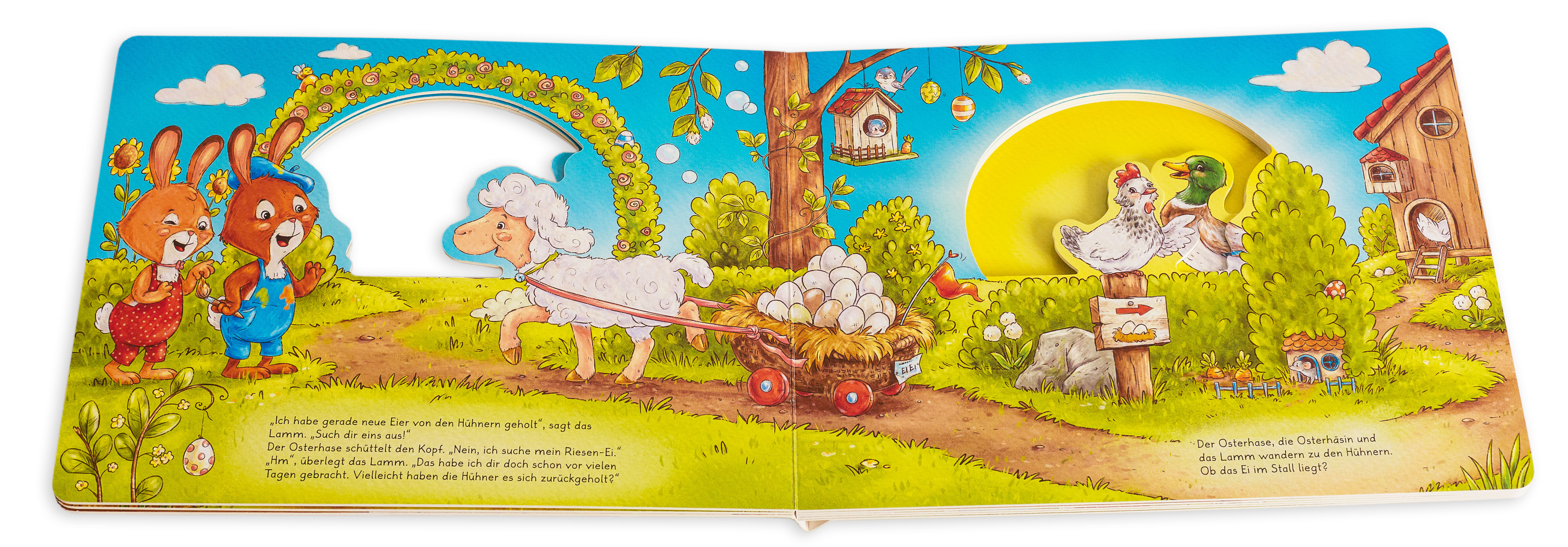 | Schlagworte | Ente • Frühling • Gans • Huhn • Lamm • Osterei • Ostereier bemalen • Ostereier finden • Ostereier-Suche • Ostereier suchen • Oster-Fest • oster-geschenk • Osterhase und Osterwerkstatt • Papp-Bilderbuch zu Ostern |