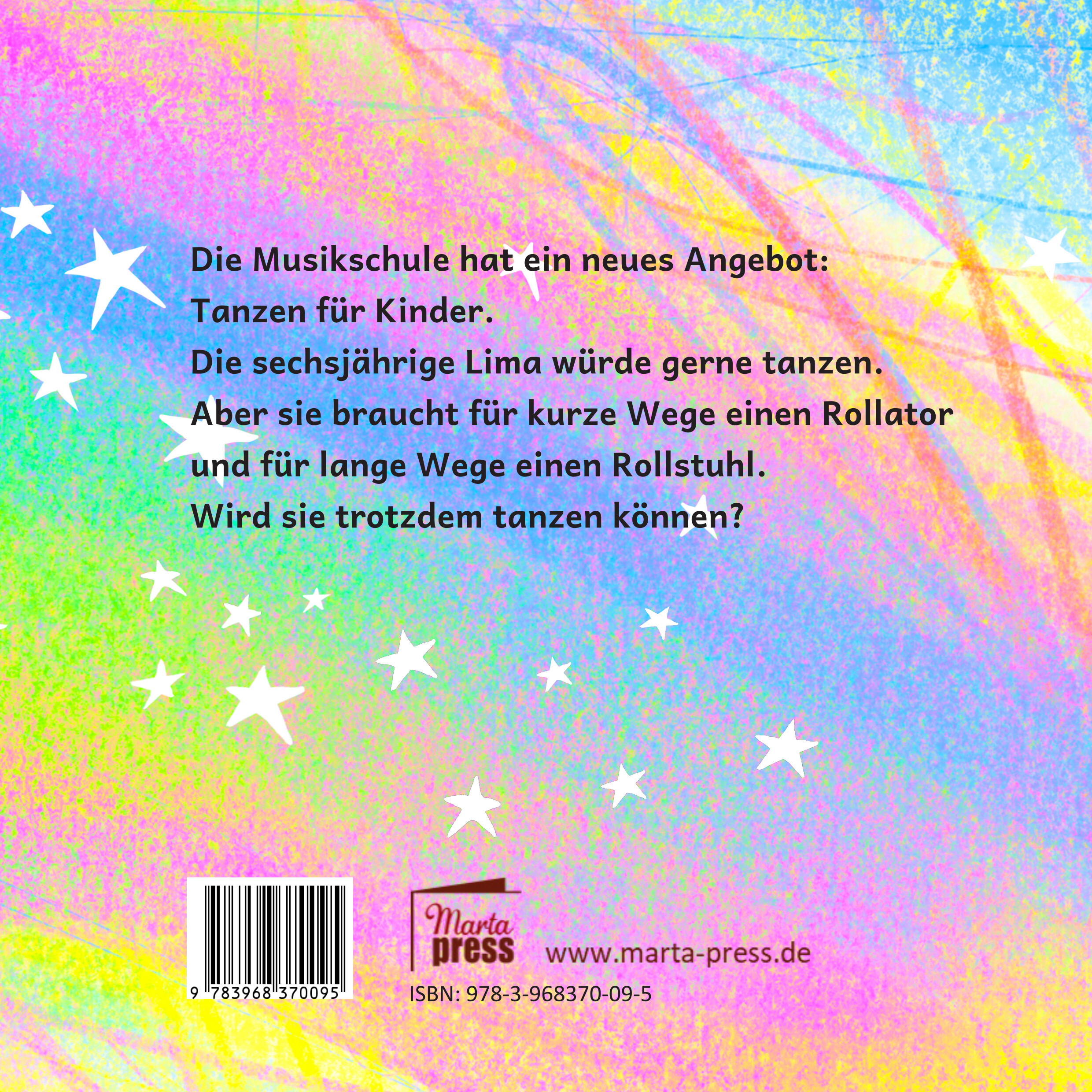 Mein Name ist Ziska Riemann. Ich habe die Bilder zu dieser Geschichte gezeichnet. Ich bin 1973 geboren. Ich arbeite als Illustratorin, Comiczeichnerin und Filmemacherin. "Lima und das Tanzen" ist das zweite Kinderbuch, an dem ich mitgearbeitet habe. 2020 erschien "Was ist ein Virus? Was ist eine Pandemie?" (ISBN: 978-3-944442-29-7, Marta Press).