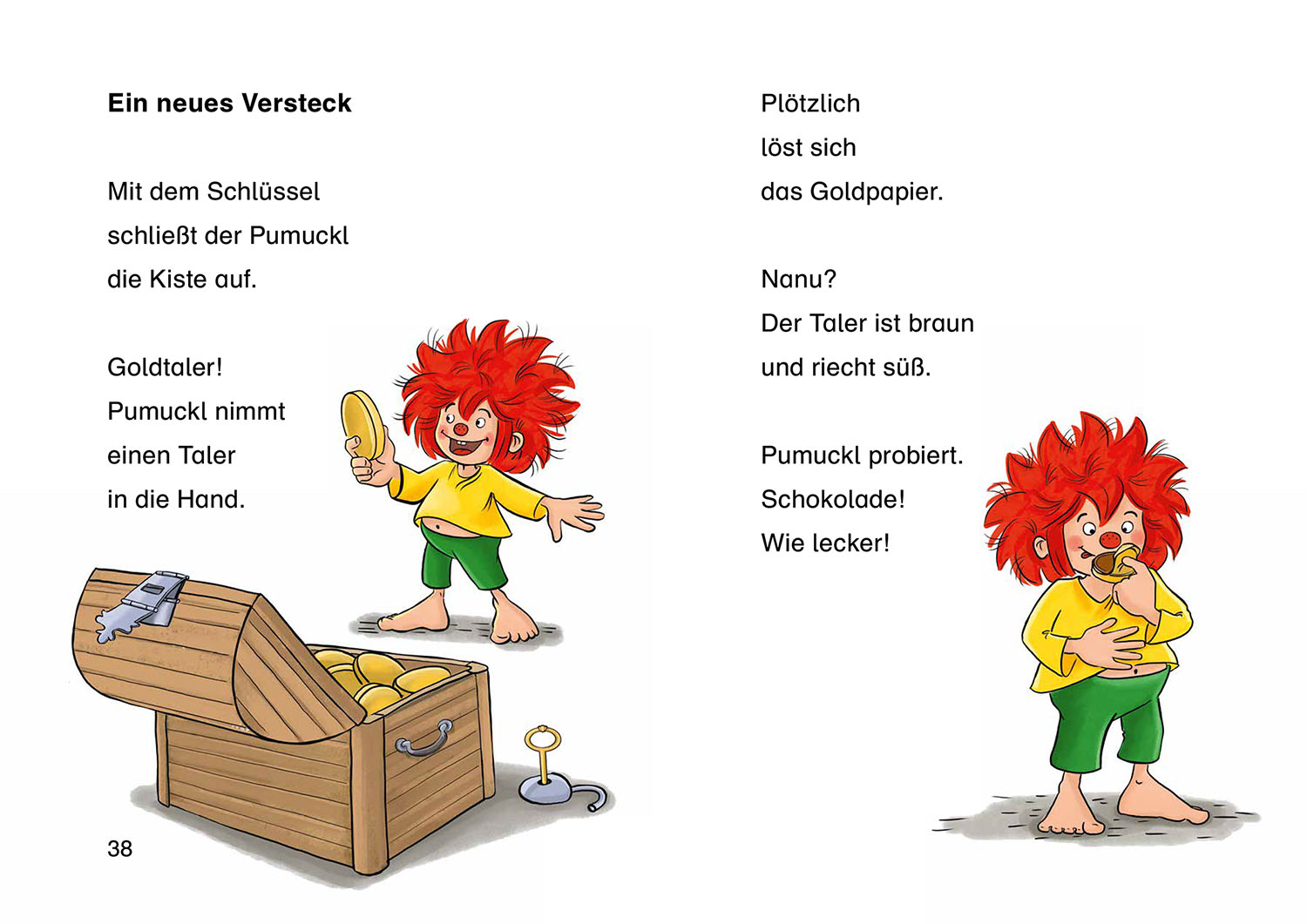 Pumuckl ist ein frecher Kobold, dem ständig neue Streiche einfallen. Mit ihm wird es nie langweilig!Meister Eder hat sich für Pumuckl etwas Tolles ausgedacht - eine Schatzsuche! Dafür hat er extra eine Schatzkarte entworfen und versteckt. Der kleine Kobold macht sich begeistert auf die Suche. Doch er muss viele Hindernisse überwinden und Abenteuer bestehen, bevor er sich schließlich über seinen Schatz freuen kann: leckere Schokogoldtaler.Lesen lernen ist schwer? Nicht mit dieser spannenden Geschichte, die auch Leseanfänger ab Klassenstufe 1 leicht bewältigen können. Illustrationen und ein Leserätsel am Ende jedes Kapitels machen den Band abwechslungsreich, sorgen für Erfolgserlebnisse und erhöhen die Lesemotivation. So macht der Einstieg ins selbstständige Bücherlesen einfach Spaß.