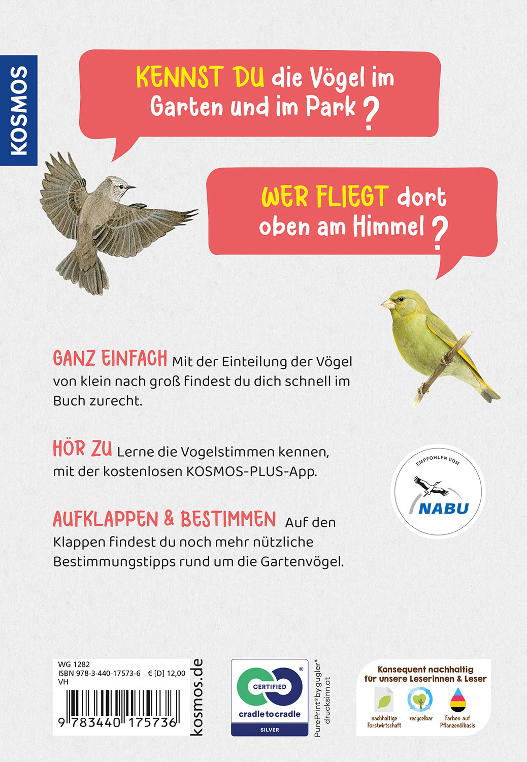 Wie hört sich ein Eichelhäher an? Woher hat die Mönchsgrasmücke ihren Namen? In welchem Garten fühlen sich Vögel besonders wohl? Dieses Buch gibt spannende Einblicke in die Vogelwelt! Der Naturführer erleichtert das Bestimmen und Erlernen der 85 häufigsten Gartenvögel. Mithilfe der Aufteilung der Kapitel nach Farben, welche die Vögel nach Größe einteilen, finden sich Kinder schnell zurecht. Mit vielen Informationen zur jeweiligen Art sowie Tipps und Tricks zur Bestimmung. Mit schönen Farbzeichnungen die Natur vor der Haustür entdecken, erkennen und erleben! Ein tolles Extra: mit der KOSMOS-PLUS-App über 85 Vogelstimmen anhören und unterscheiden lernen.Kompetent und kindgerecht stellt dieser Naturführer für Kinder die spannende Welt der heimischen Gartenvögel vor. Empfohlen vom NABU. Nachhaltig produziert im Cradle-to-Cradle-Verfahren.