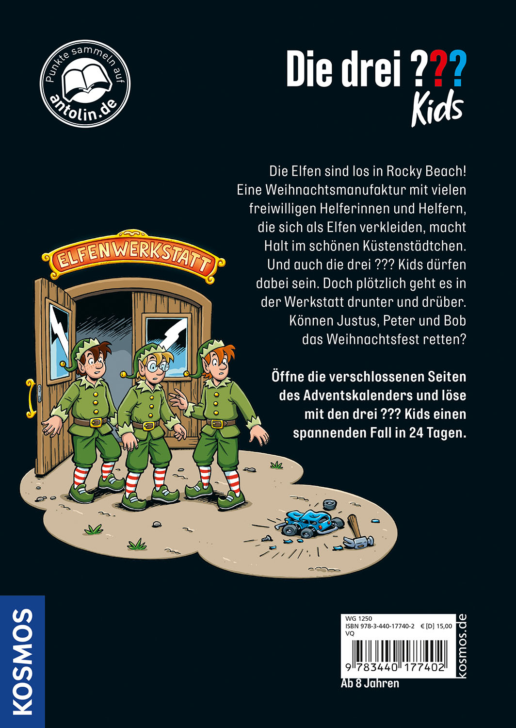 Ein ganz besonderer Adventskalender: Tag für Tag die verschlossenen Seiten öffnen und Justus, Peter und Bob durch ein Weihnachtsabenteuer begleiten. Neben dem Adventskrimi in 24 verschlossenen Kapiteln, weihnachtlichen Rätseln, Rezepten und Bastelspaß ist ein Die drei ??? Kids-Stickerbogen enthalten.Die Elfen sind los! Weihnachten steht vor der Tür und der Marktplatz in Rocky Beach verwandelt sich in eine Geschenke-Werkstatt mit Weihnachtselfen. Doch plötzlich geht alles schief und die drei ??? Kids begeben sich auf eine spannende Spurensuche. Justus, Peter und Bob sind beste Freunde und Detektive. Zusammen haben die drei ??? schon viele knifflige Fälle gelöst.
