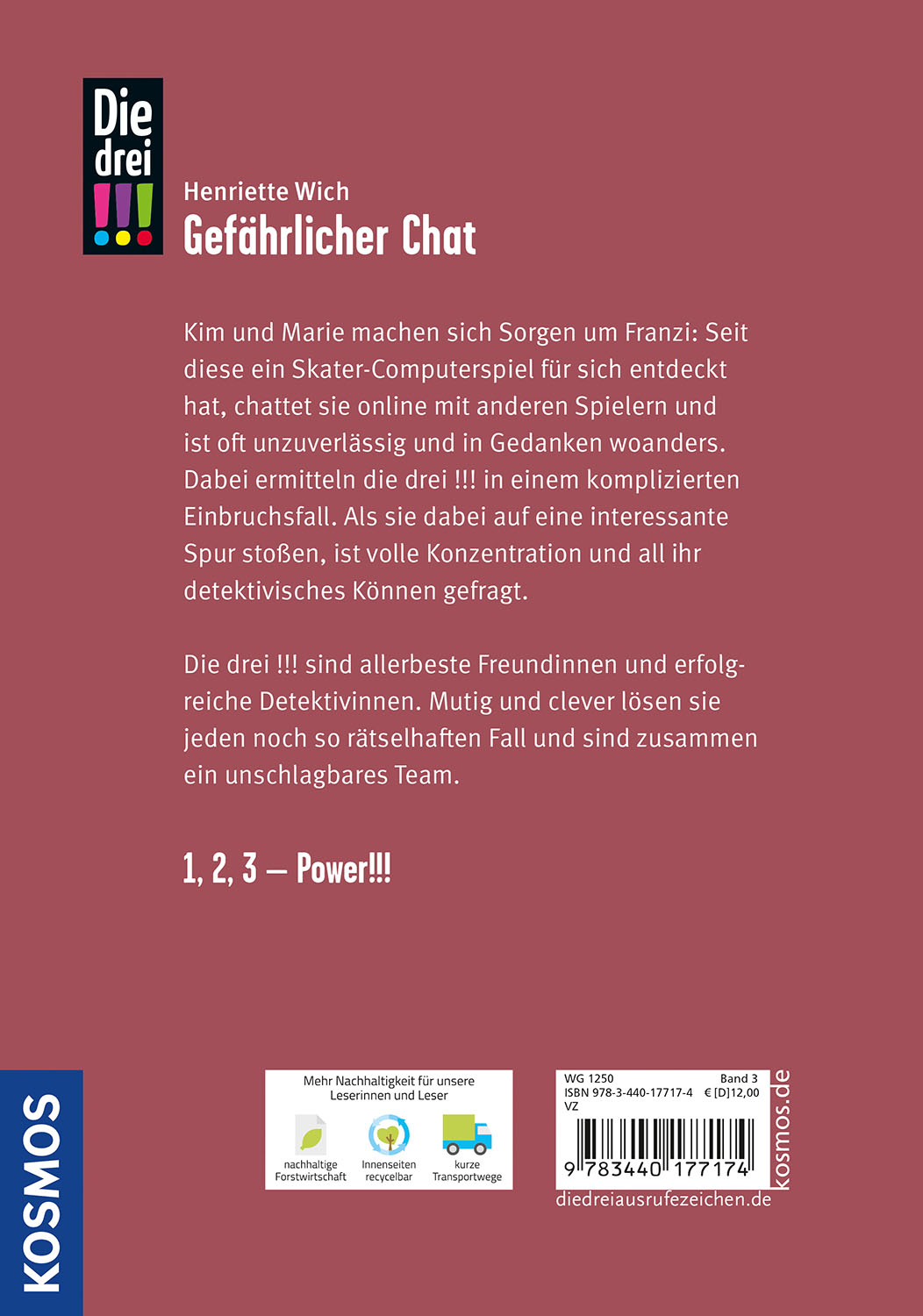 Die drei !!! knacken jeden Fall!Welche Gefahr kann schon von einem Chat im Internet ausgehen? Franzi jedenfalls findet die Leute, die sich dort über Inlineskating austauschen, sehr nett und witzig. Dann aber geschehen höchst merkwürdige Dinge - und die drei !!! müssen ihr ganzes detektivisches Wissen anwenden, um diesen kniffligen Fall zu lösen ...
