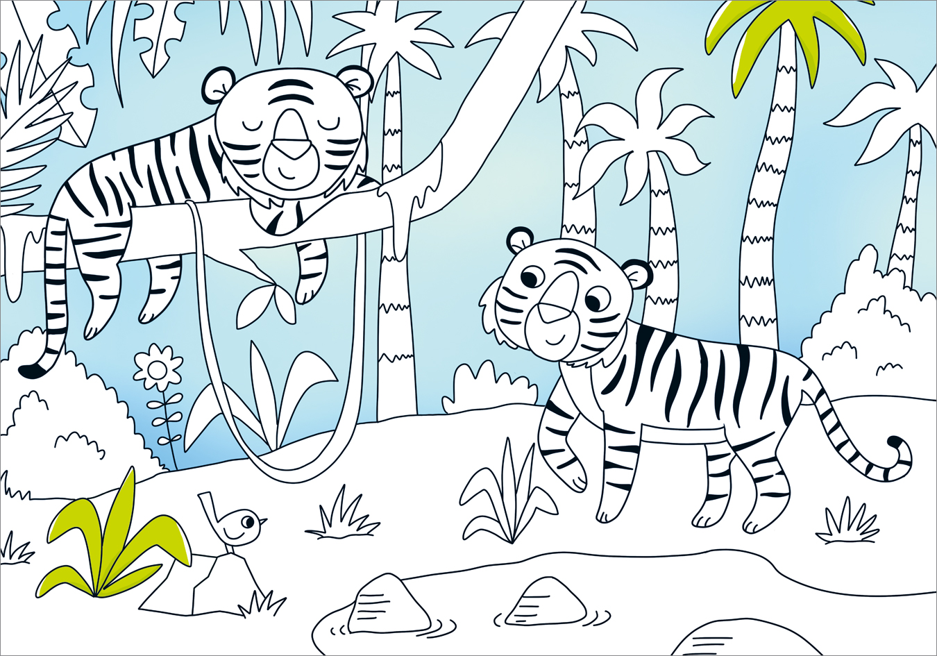 Spielende Affen, Ziegen im Streichelzoo, die Löwenfamilie mit ihren Babys und viele weitere beliebte Zootiere lassen sich mit bunten Farben zum Leben erwecken. Jedes Motiv zeigt eine Szene aus dem Zoo. Mit den großformatigen Ausmalbildern können auch kleinere Kinder das Ausmalen üben und ihre Feinmotorik verbessern. Großflächige Hintergründe wie der blaue Himmel oder die grüne Wiese sind teilweise vorkoloriert. So macht das Malen noch mehr Spaß und weckt die Lust auf den nächsten Zoobesuch.