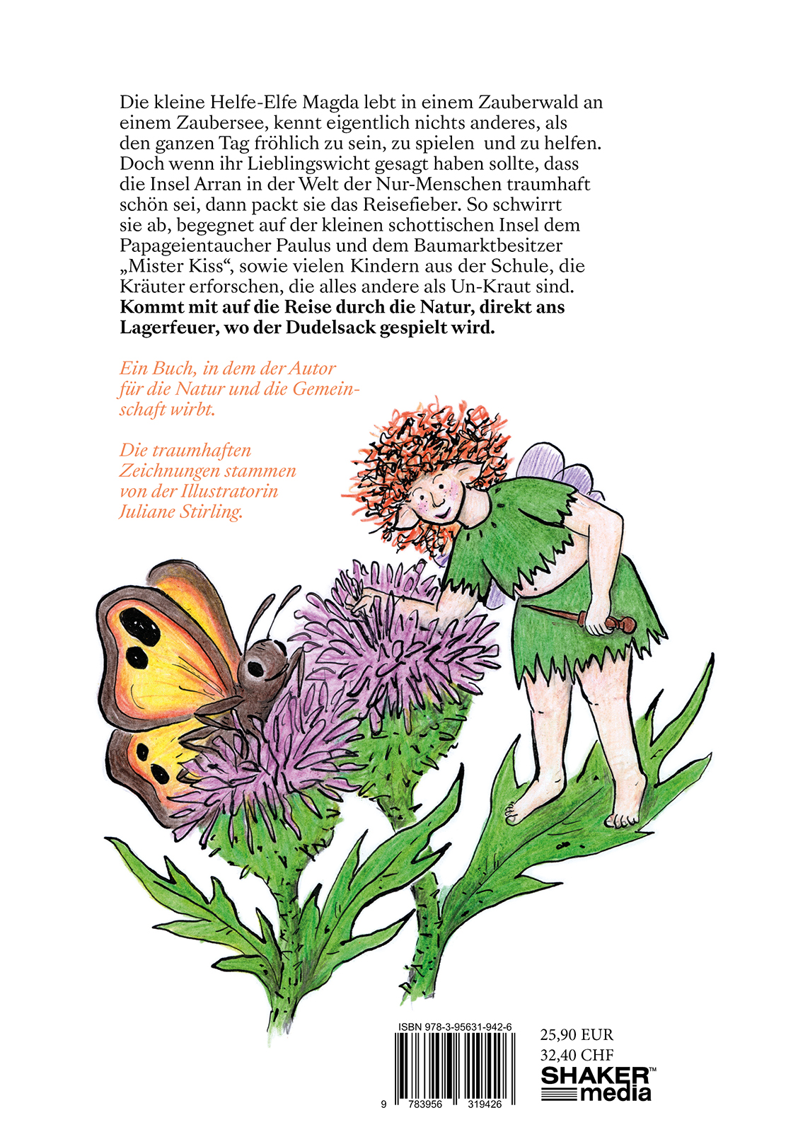 Michael Oertels drittes Buch von der Helfe-Elfe Magda, die in einem Zauberwald an einem Zaubersee lebt, nichts anderes kennt, als den ganzen Tag fröhlich zu sein und zu helfen, besucht die Insel Arran, hilft mit Mister Kiss und dem Puffin Paulus Schulkinder eine schwere Schulaufgabe zu lösen. Eine zauberhafte Geschichte von Freundschaft, Natur, Kräutern, kleinen und großen Träumen! Der Autor, der auch für Erwachsene schreibt, lebt in Leipzig, die Illustratorin, Juliane Stirling, ist in Hamburg ansässig. In den vergangenen Jahren erhielt Michael Oertel verschiedene Auszeichnungen.