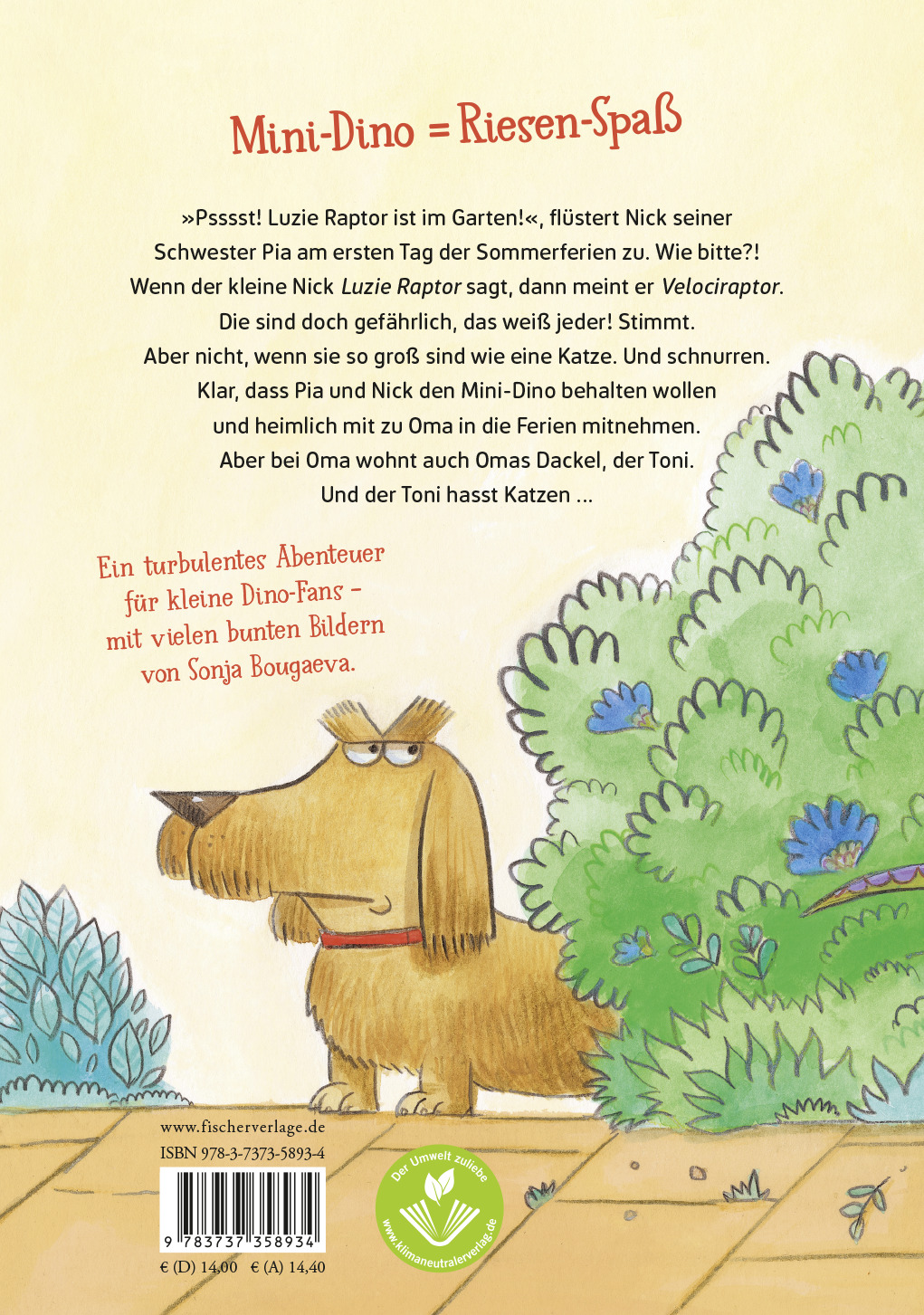 »Psssst! Luzie Raptor ist im Garten!«, flüstert der kleine Nick seiner Schwester Pia am ersten Tag der Sommerferien zu. Wie bitte?! Wenn der kleine Nick Luzie Raptor sagt, dann meint er Velociraptor. Die sind doch gefährlich, das weiß jeder! Stimmt. Aber nicht, wenn sie so groß sind wie eine Katze. Und schnurren. Klar, dass Pia und Nick den Mini-Dino behalten wollen und heimlich mit zu Oma in die Ferien mitnehmen. Aber bei Oma wohnt auch Omas Dackel, der Toni. Und der Toni hasst Katzen ...