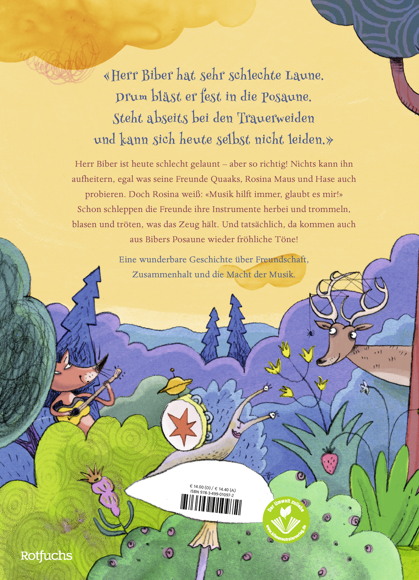 | Schlagworte | aufheitern • Biber • Biber & Quaaks • Bilderbuch ab 3 Jahre • bilderbuch gefühle • Bilderbuchreihe • bilderbuch reime • Bilderbuch Tiere • Die Rüpelbande • Freunde • Freundschaft • Geschenk Kindergarten • Hase • Jim ist mies drauf • Kinderbücher Gefühle • Kinderreime • Musik • Posaune • Quaaks • Reime • Reime für Kinder • Rosina Maus • schlechte Laune • Tiere • Trotzphase • Und was fühlst du Känguru • Vorlesebuch ab 3 Jahre • Vorlesebuch ab 4 Jahre • witziges Bilderbuch • Wortspiele für Kinder |