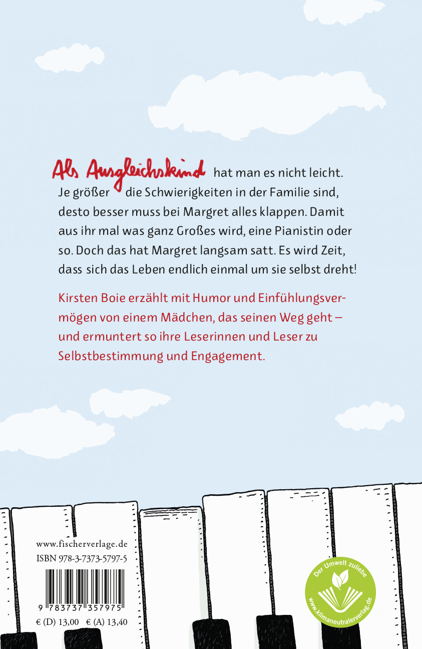 Als Ausgleichskind hat man es nicht leicht. Je größer die Schwierigkeiten in der Familie sind, desto besser muss bei Margret alles klappen. Damit wenigstens aus ihr mal was ganz Großes wird, eine Pianistin oder so. Doch das hat Margret langsam satt. Es wird Zeit, dass sich das Leben endlich einmal um sie selbst dreht!