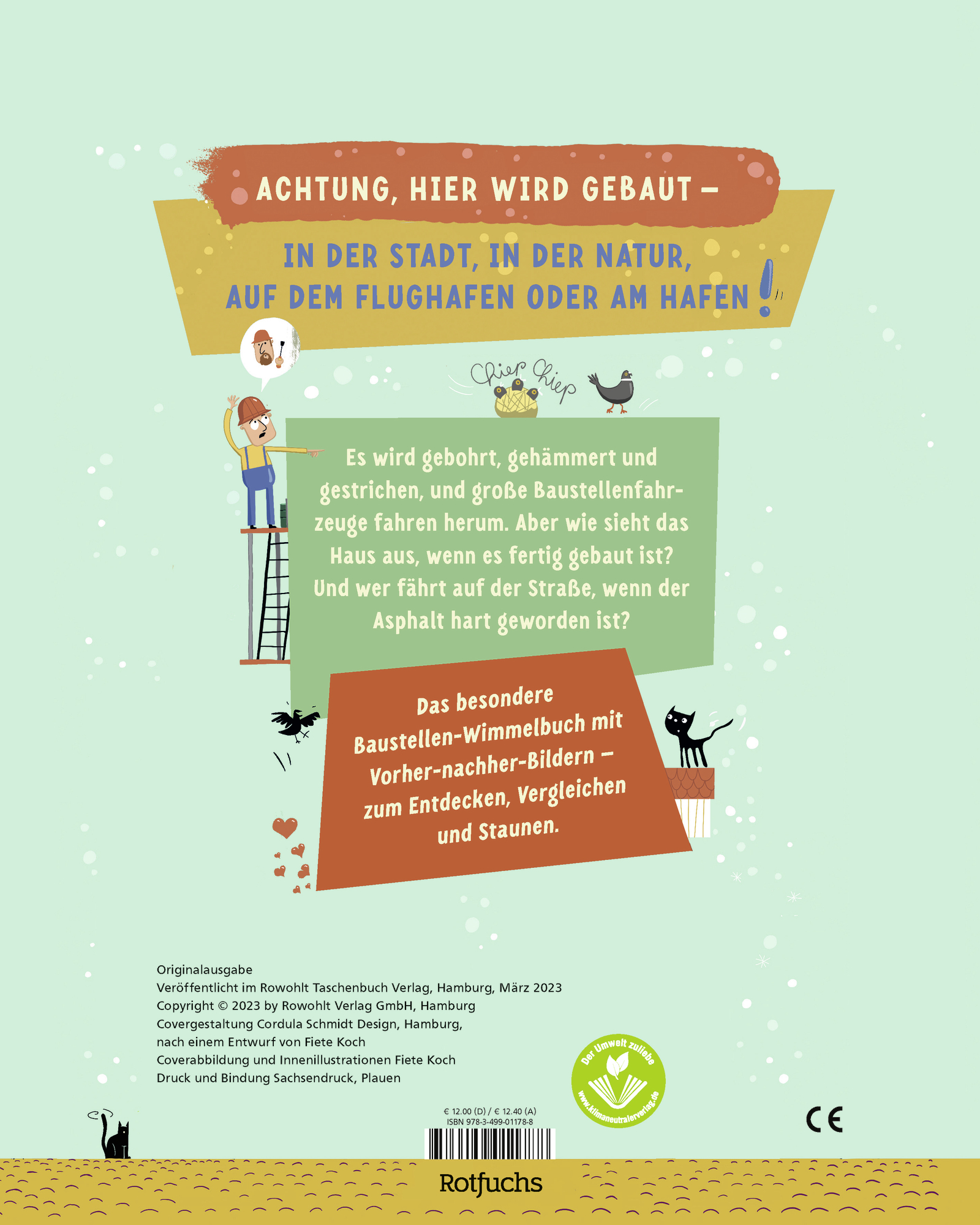 Auf der Baustelle gibt es viel zu entdecken - da gibt es Bagger und Planierraupen, es wird gebohrt und gehämmert und gestrichen. Aber wie sieht es eigentlich aus, wenn alles fertig gebaut ist? In diesem Buch können Kinder Baustellen in der Stadt und auf dem Land entdecken, da wird ein großes Wohn- und Geschäftshaus gebaut und dort eine Autobahn. Auch im Hafen und auf dem Flughafen sind Baustellen zu bestaunen. Und auf dem Land baut der Biber seinen Bau ... Und wenn alles fertig ist? Dann wird dort gelebt und gespielt, gewohnt und gearbeitet!