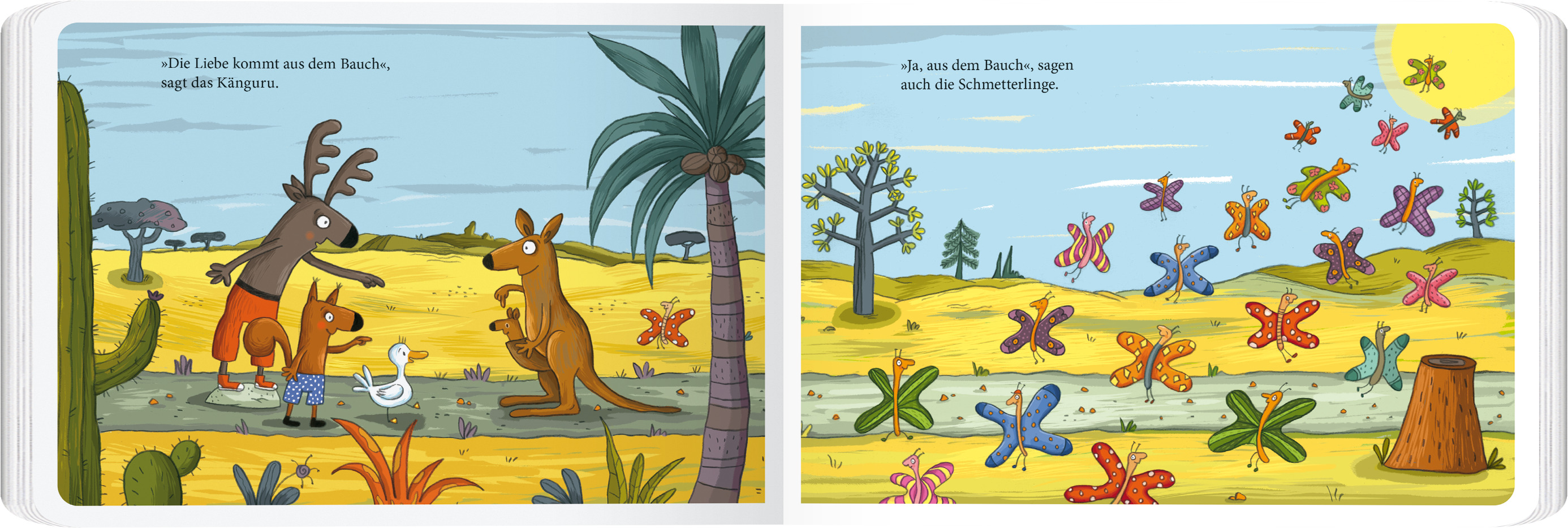 | Schlagworte | Affe • Antwort • Bauch • Bauchweh • Baum • Bilderbuch • Blume • Durst • Eichhörnchen • Elch • Ente • Erde • Erklären • Fisch • Frage • Freundschaft • Gefühl • Gemeinschaft • Geschenk • Geschenkbuch • Groß • Herz • Himmel • Humor • Hunger • illustriertes Buch • Känguru • klein • Kopf • Kribbeln • Liebe • Liebhaben • Pups • Regenwurm • Schmetterling • Schwan • Seele • Sonne • Streicheln • Vogel • Vorlesebuch • Wunder • Zärtlichkeit |