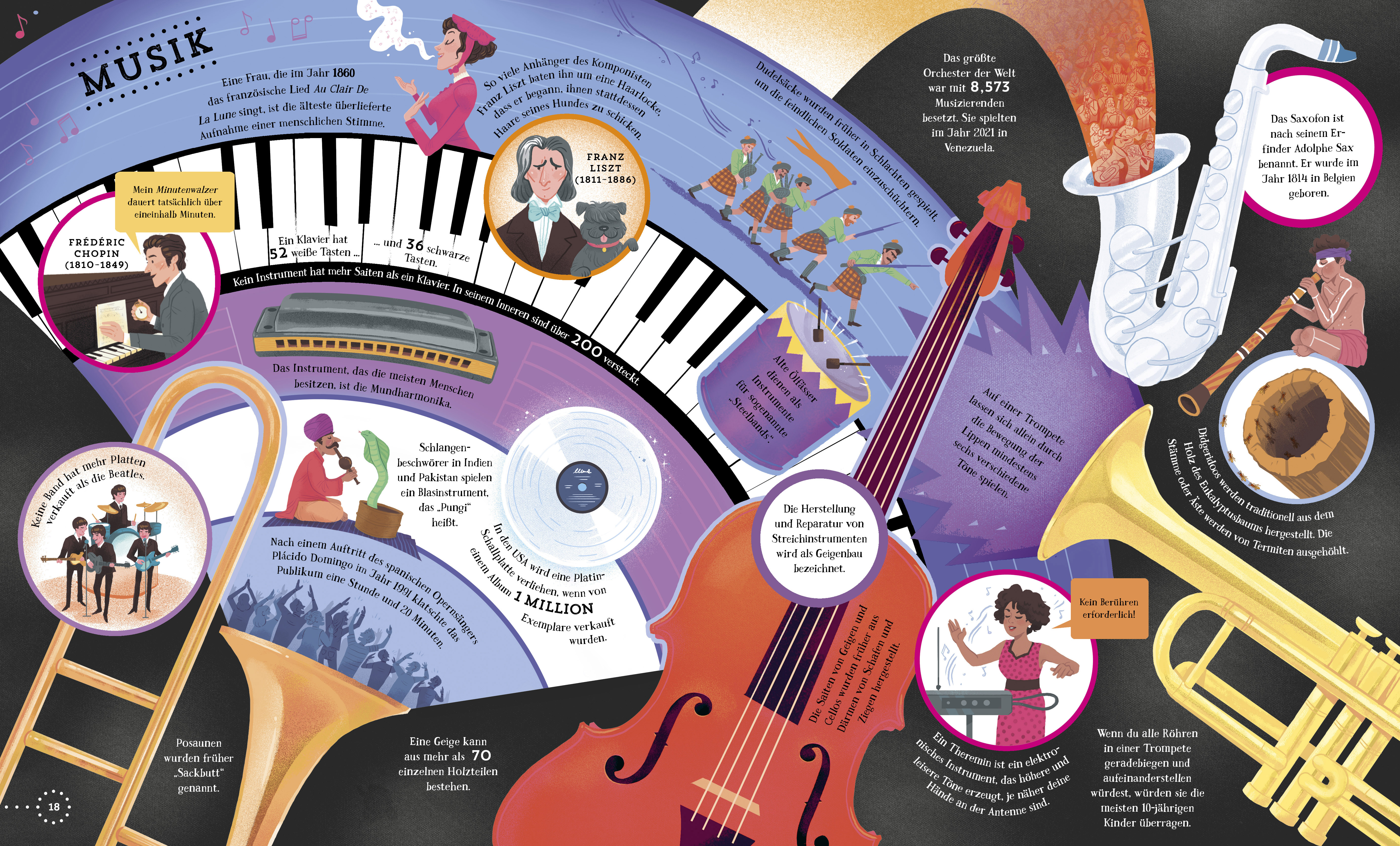 Wo wurden die ersten Feuerwerke gezündet? Wie viele Satelliten wurden bisher ins All geschossen? Und was bedeutet das Wort Kimono? In diesem Buch erwarten dich über 300 unterhaltsame Fakten und spannende Informationen. Ob Geschichte, Weltraum, Sport, Musik oder Tiere – hier findest du Wissenswertes zu vielen Themen.