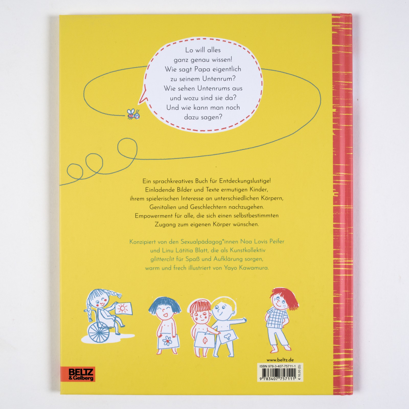 Onten, Enten und Untenrums: Lo will alles ganz genau wissen. Wie heißt das eigentlich zwischen den Beinen? Wozu ist es da und wie sieht es aus? Und wie kann man noch dazu sagen? Ein sprachkreatives Bildersachbuch, das in kindnahen Bildern und Texten einen unverkrampften Zugang zu unterschiedlichen Körpern, Geschlechtsteilen und Geschlechtern bietet. Ein empowerndes Buch, warm und frech zugleich, das den selbstbestimmten Zugang zum eigenen Körper in den Mittelpunkt stellt.