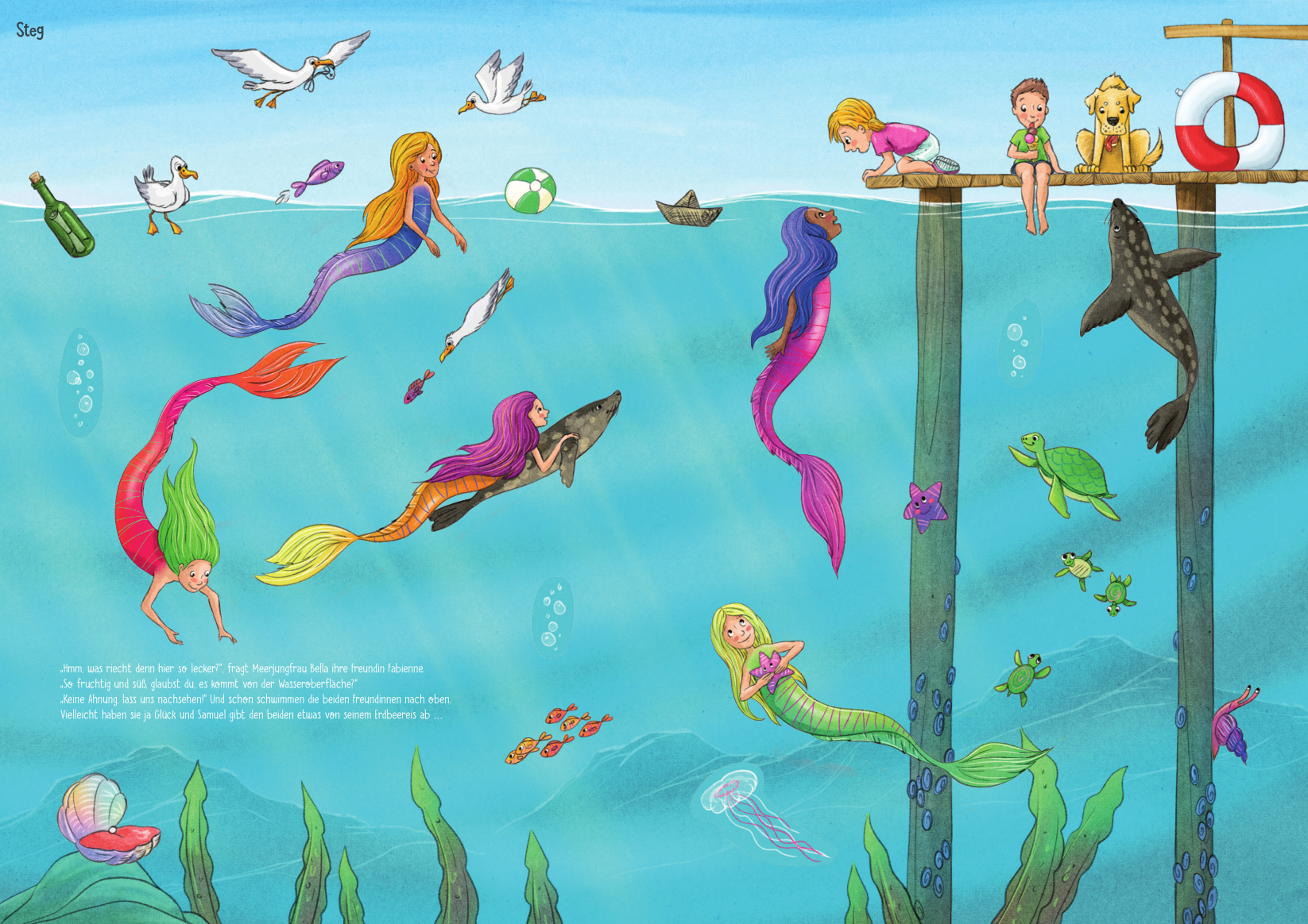 Ob auf der Algenwiese, in der Kristallhöhle, im Korallenriff oder im Muschelgraben - in den 13 unterschiedlichen Welten ist für jede kleine Meerjungfrau etwas dabei. Hier kann nach Herzenslust geklebt, verziert und das eigene Meerjungfrauenparadies zum Leben erweckt werden.