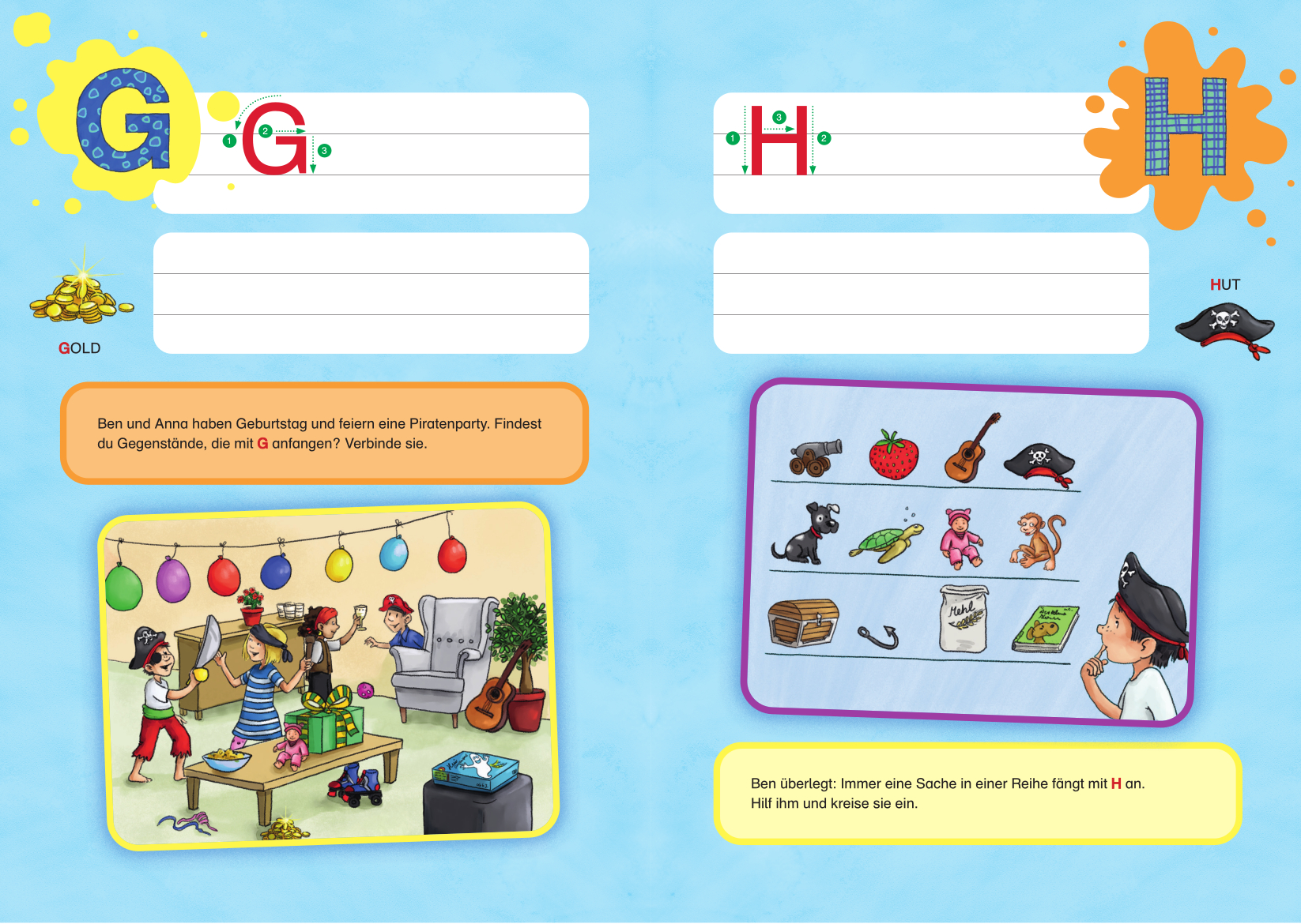 Vorschulkinder können in diesem Heft zusammen mit den Geschwistern Anna und Ben das Alphabet entdecken. Für jeden Buchstaben haben sich die beiden eine abwechslungsreiche Aufgabe ausgedacht. Und da sie nichts lieber mögen als Piraten, gibt es natürlich viele Dinge, die kleinen Seeräubern Spaß machen. Also Anker lichten und los geht's!