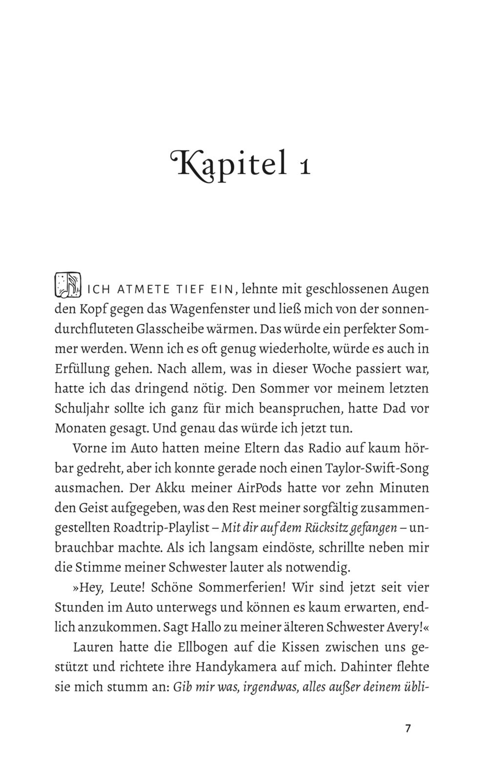 Avery liebt es, sich in Musik zu verlieren. Aber nach einem Streit mit ihrer besten Freundin können selbst ihre Playlists sie nicht ablenken. Und es hilft auch nicht, dass ihre Eltern sie und ihre hyperaktive Schwester für zwei Monate »Spaß« in ein abgelegenes Familien-Resort schleppen. Avery will den Sommer schon abschreiben, da trifft sie Brooks, den Gitarristen der Camp-Band - sehr attraktiv und absolut tabu. Trotzdem landen sie ständig zusammen am Lagerfeuer. Oder bei den Bandproben. Bald wird klar, dass sie sich gegenseitig neue Wege zeigen können - mit ein wenig Mut und ganz viel Herz.