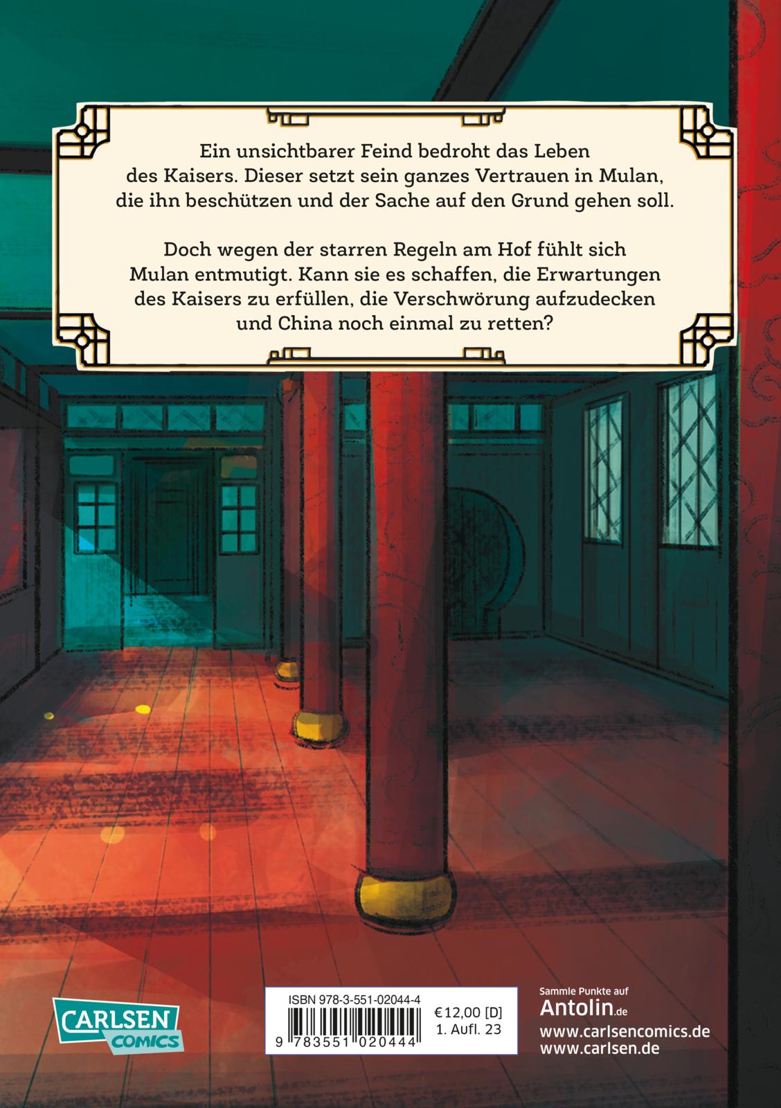 Ein unsichtbarer Feind bedroht das Leben des Kaisers in den Mauern seines eigenen Palastes und Mulan ist die Einzige, der er vertrauen kann. Aber zwischen all den Regeln des Hofes fühlt sie sich eingeengt und hoffnungslos. Wird sie es schaffen, den Erwartungen des Kaisers gerecht zu werden, die dunkle Bedrohung zu besiegen und China noch einmal zu retten?