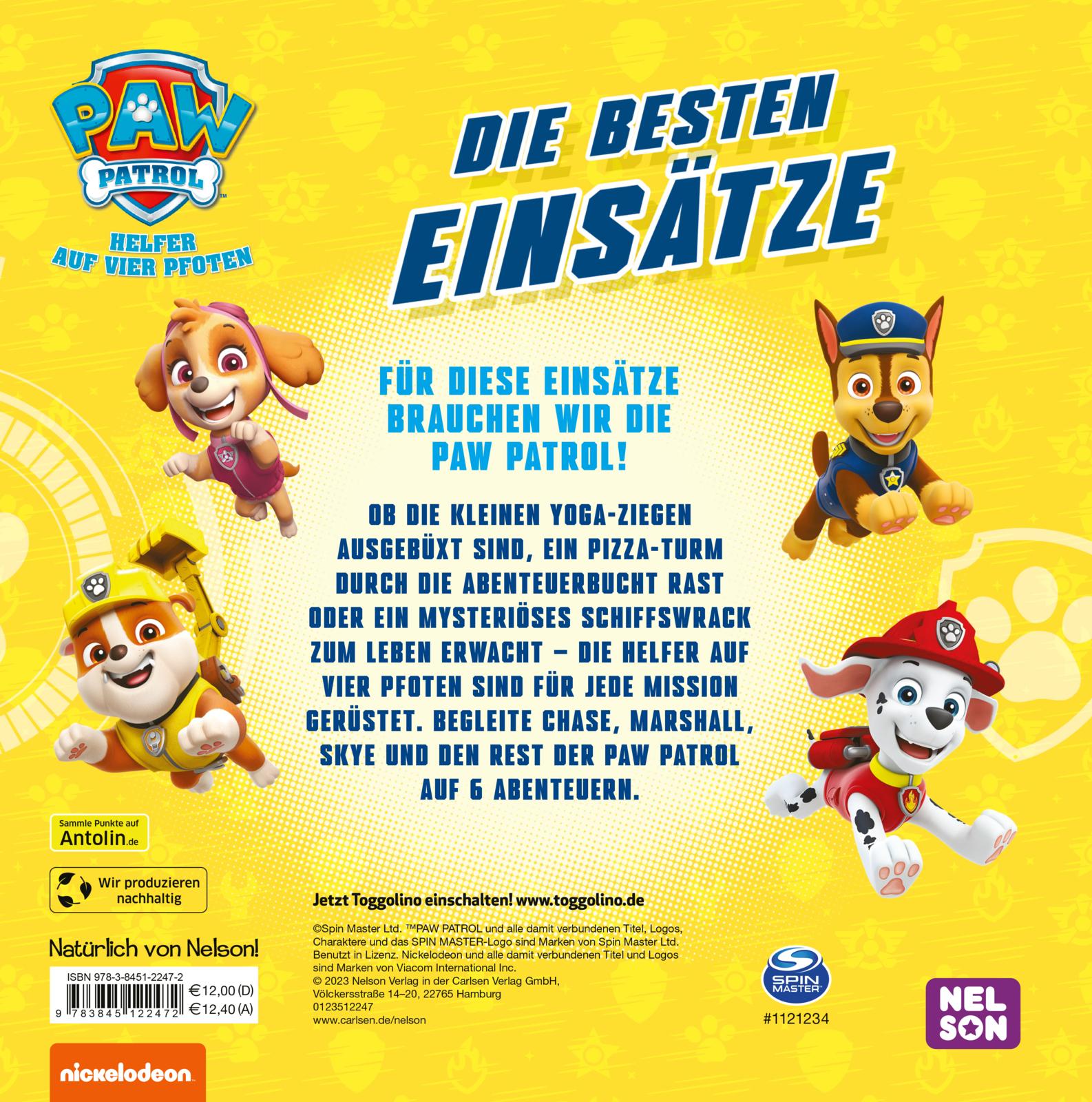 Ob die kleinen Yoga-Ziegen ausgebüxt sind, ein Pizza-Turm durch die Abenteuerbucht rast oder ein mysteriöses Schiffswrack zum Leben erwacht - die Helfer auf vier Pfoten sind für jede Mission gerüstet. Begleite Chase, Marshall, Skye und den Rest der PAW Patrol auf 6 Abenteuern basierend auf den TV-Folgen der erfolgreichen Vorschulserie.