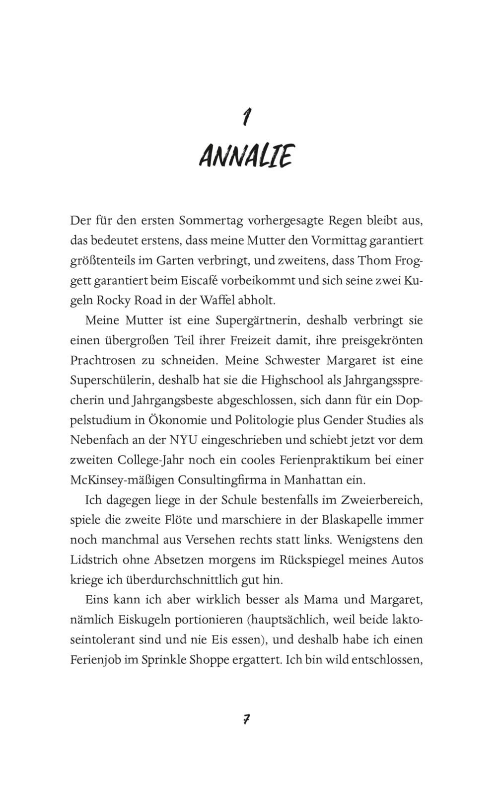 Bisher hat Annalie in den Ferien in der örtlichen Eisdiele gejobbt und sich nichts sehnlicher gewünscht, als dass der süßeste Junge der Schule sie endlich wahrnimmt. Ihre ältere Schwester Margaret hingegen will die verschlafene Kleinstadt endlich hinter sich lassen und hat ihr Praktikum in New York auch deshalb angetreten, um ihrem Ex-Freund nicht mehr zu begegnen.