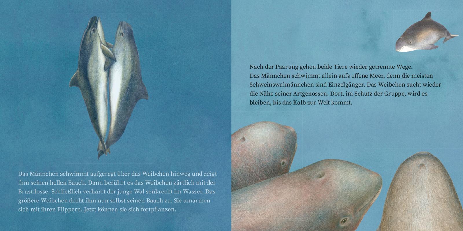 Detailgetreue Bilder und eine leicht verständliche Vorlesegeschichte lassen uns am Leben eines kleinen Schweinswal von der Geburt bis ins Erwachsenenalter teilhaben.