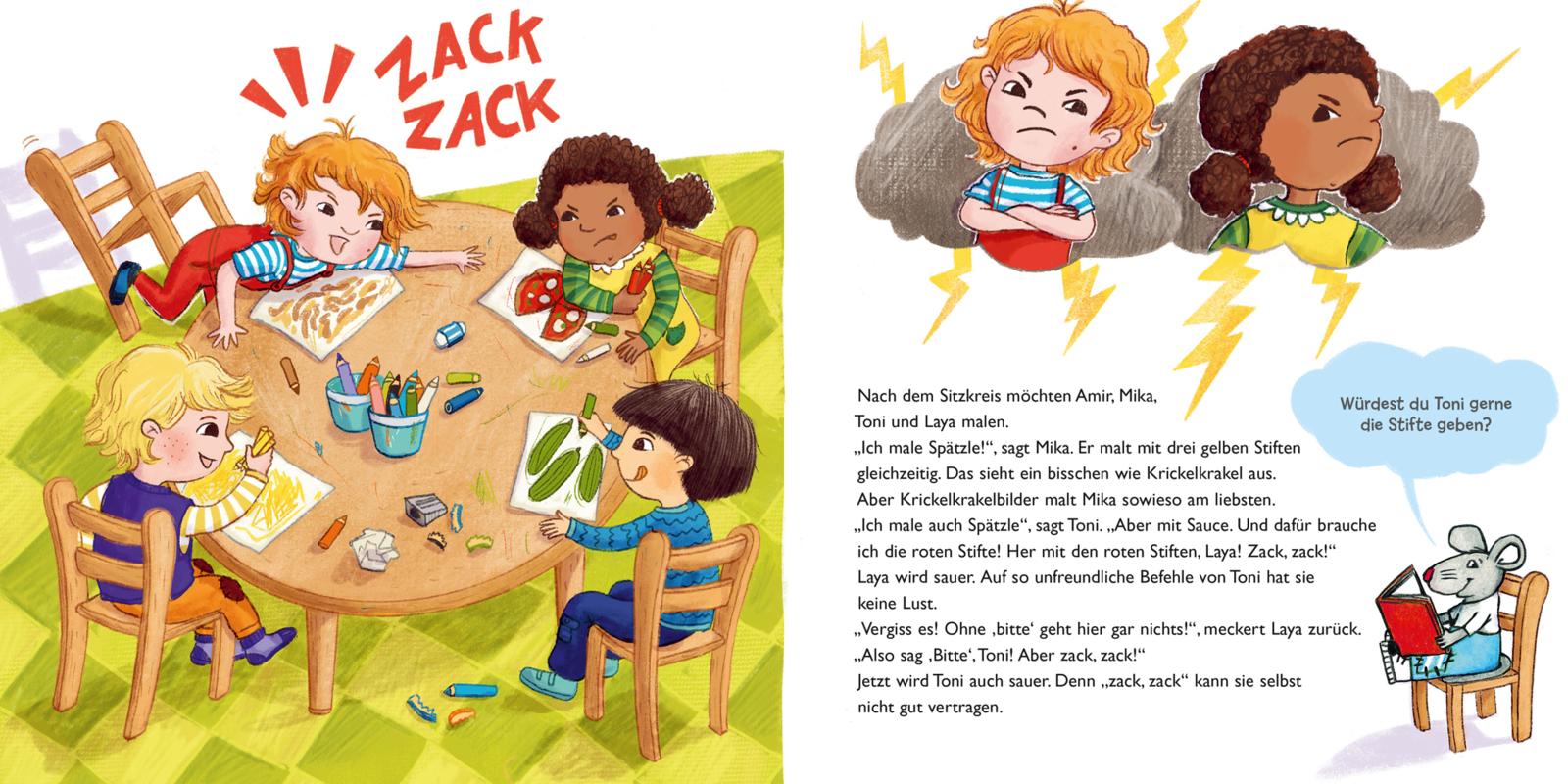 Fröhliche Vorlesegeschichte für Kita-Kinder über soziale Kompetenzen wie Höflichkeit, Respekt und Achtsamkeit.