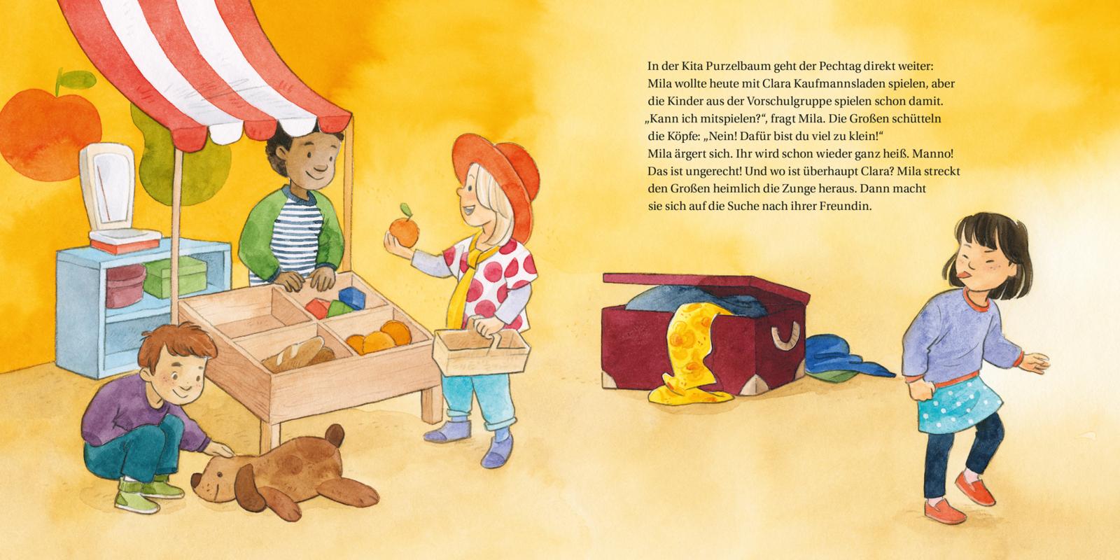Mila muss sich heute furchtbar ärgern. Es geht einfach alles schief. In der Kita ist der Kaufladen schon besetzt, ihre beste Freundin ist krank und dann läuft auch noch Wasser über ihr schönes Bild. Mila wird wütend. Richtig wütend! Es rumort und brodelt in ihrem Bauch. Ihr wird heiß und kalt. Die Wut muss raus! Aber wie?