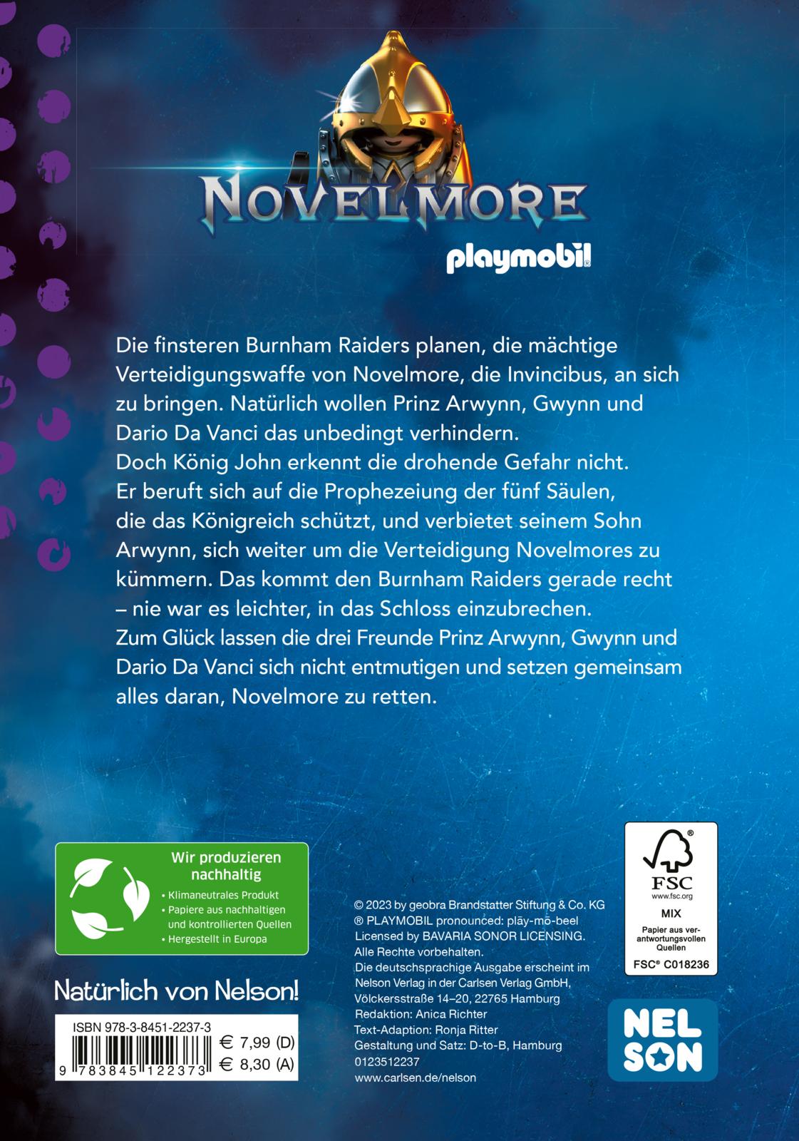 Die finsteren Burnham Raiders planen die mächtige Verteidigungswaffe von Novelmore, die Invincibus, an sich zu bringen. Natürlich wollen Prinz Arwynn, Gwynn und Dario da Vanci das unbedingt verhindern. Doch König John erkennt die drohende Gefahr nicht. Er beruft sich auf die Prophezeiung der fünf Säulen, die das Königreich schützt, und verbietet seinem Sohn Arwynn sich weiter um die Verteidigung Novelmores zu kümmern. Das kommt den Burnham Raiders gerade recht - nie war es leichter, in das Schloss einzubrechen.