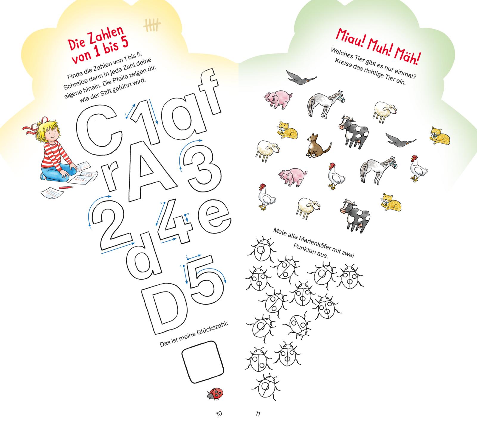 - Einfache Übungen, lustige Rätsel und fröhliche Malbilder machen Spaß