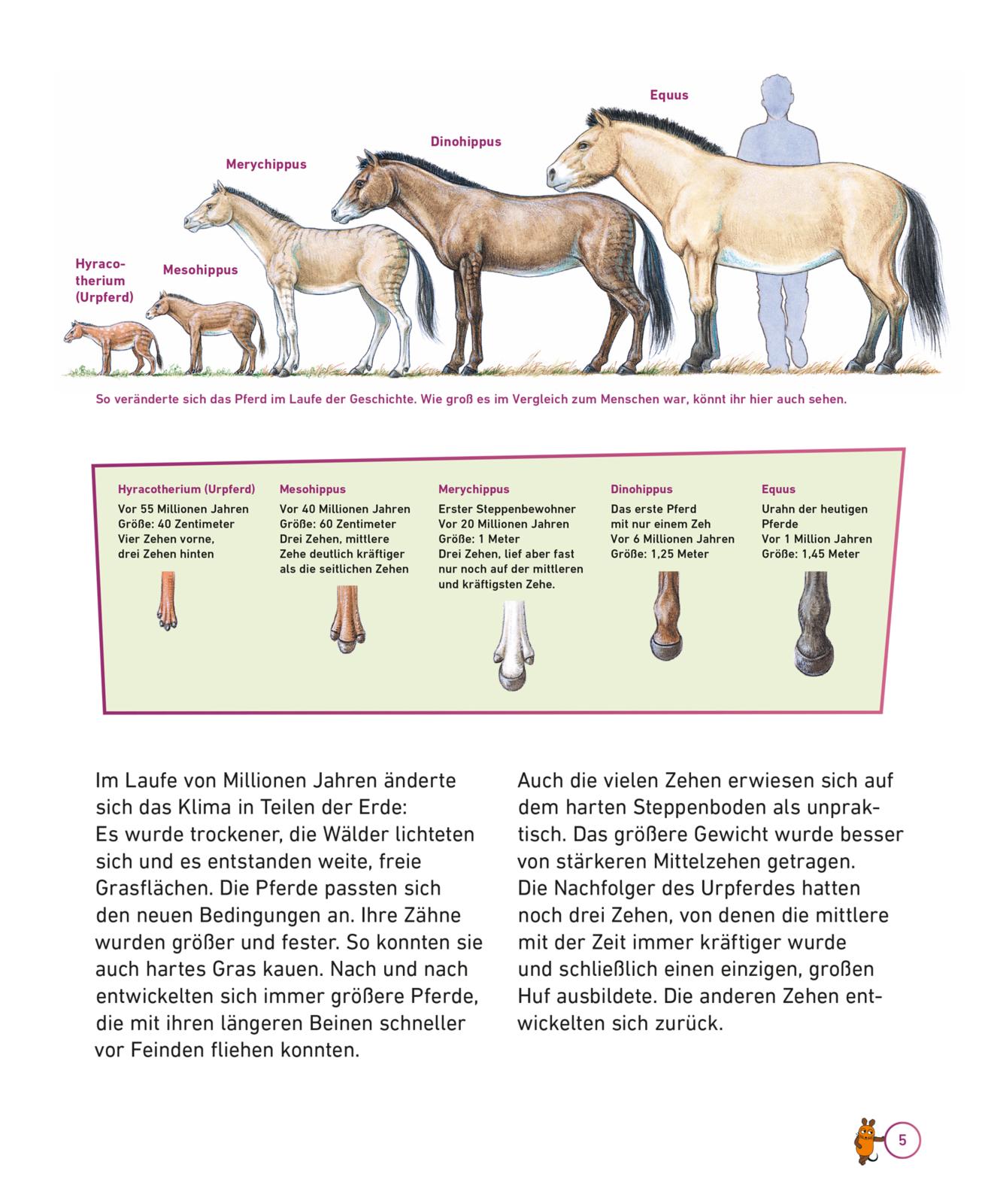 Kann man auf Zebras reiten? Warum fallen Pferde beim Schlafen im Stehen nicht einfach um? Die Maus nimmt uns mit in die die Welt der Pferde und zeigt uns umfassend und mit detailreichen Illustrationen, spannenden Bildern und Infokästchen, was es mit der Pferdestärke auf sich hat, wie man erkennt, dass ein Pferd schlecht gelaunt ist oder klärt beispielweise ob ein Pferd denn nun eine lange Nase oder eine lange Stirn hat.