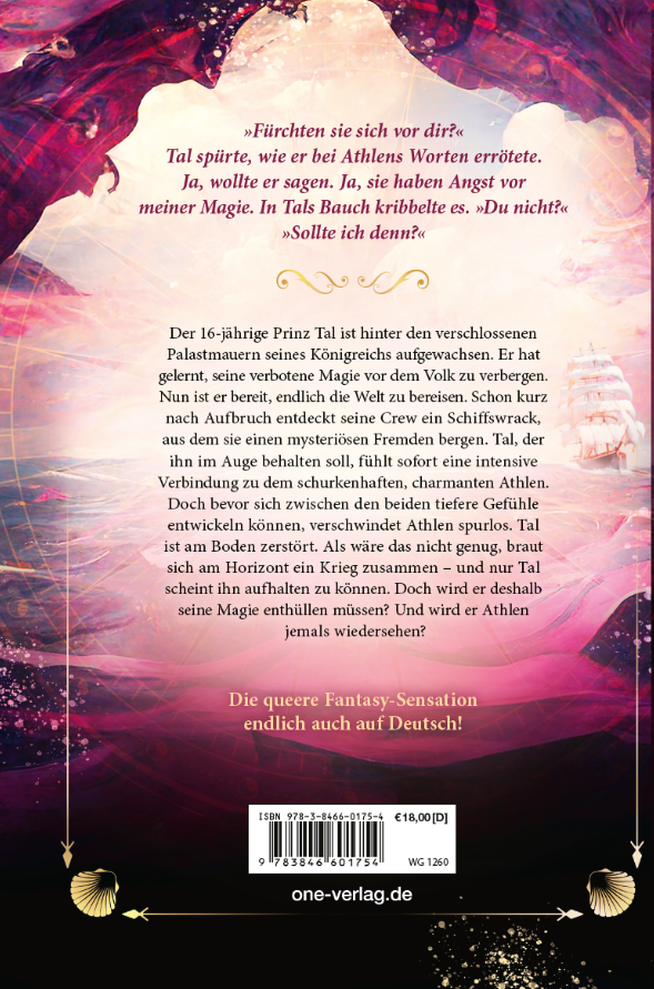 Prinz Tal ist hinter den verschlossenen Palastmauern seines Königreichs aufgewachsen. Er hat gelernt, seine verbotene Magie vor dem Volk zu verbergen. Nun ist er bereit, endlich die Welt zu bereisen. Doch schon kurz nach Aufbruch entdeckt seine Crew ein Schiffswrack, aus dem sie einen mysteriösen Fremden bergen. Tal, der ihn im Auge behalten soll, fühlt sofort eine intensive Verbindung zu dem schurkenhaften, charmanten Athlen. Bevor sich zwischen den beiden tiefere Gefühle entwickeln können, verschwindet Athlen jedoch spurlos, und Tal wird von Piraten verschleppt, die damit drohen, seine magischen Kräfte zu enthüllen. Wird es ihm gelingen zu fliehen? Und wird er Athlen jemals wiedersehen?