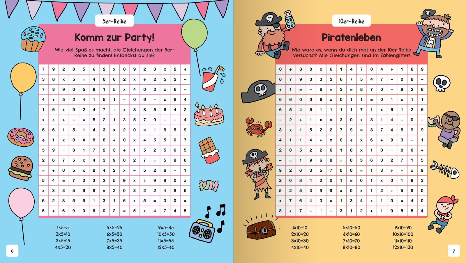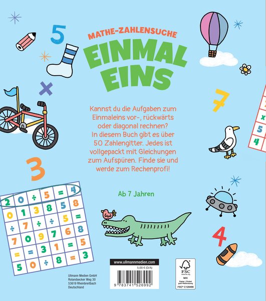 Kannst du die Aufgaben zumEinmaleins vor-, rückwärtsoder diagonal rechnen?In diesem Buch gibt es über50 Zahlengitter. Jedes istvollgepackt mit Gleichungenzum Aufspüren. Finde sie undwerde zum Rechenprofi!