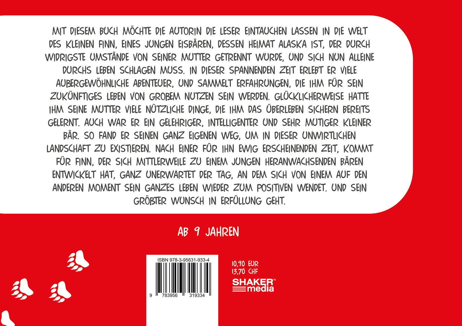 Mit diesem Buch möchte die Autorin die Leser eintauchen lassen in die Welt des kleinen Finn, eines jungen Eisbären, dessen Heimat Alaska ist, der durch widrigste Umstände von seiner Mutter getrennt wurde, und sich nun alleine durchs Leben schlagen muss. In dieser spannenden Zeit erlebt er viele außergewöhnliche Abenteuer, und sammelt Erfahrungen, die ihm für sein zukünftiges Leben von großem Nutzen sein werden. Glücklicherweise hatte ihm seine Mutter viele nützliche Dinge, die ihm das Überleben sichern bereits gelernt. Auch war er ein gelehriger, intelligenter und sehr mutiger kleiner Bär. So fand er seinen ganz eigenen Weg, um in dieser unwirtlichen Landschaft zu existieren. Nach einer für ihn ewig erscheinenden Zeit, kommt für Finn, der sich mittlerweile zu einem jungen heranwachsenden Bären entwickelt hat, ganz unerwartet der Tag, an dem sich von einem auf den anderen Moment sein ganzes Leben wieder zum Positiven wendet. Und sein größter Wunsch in Erfüllung geht.