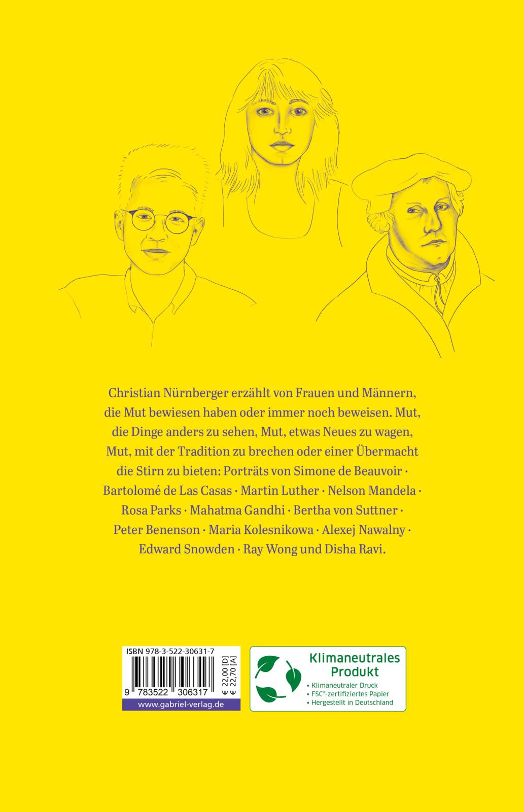 Christian Nürnberger erzählt von Frauen und Männern, die Mut bewiesen haben oder immer noch beweisen: Mut, die Dinge anders zu sehen, mit der bisherigen Tradition zu brechen oder einer Übermacht die Stirn zu bieten. Sie kämpfen für Gerechtigkeit, für die Demokratie, für Feminismus, für mehr Klimaschutz, gegen Unterdrückung, Überwachung, Rassismus oder Korruption. Dabei riskieren sie viel und ob sich ihr Einsatz lohnen wird, wissen sie nicht.