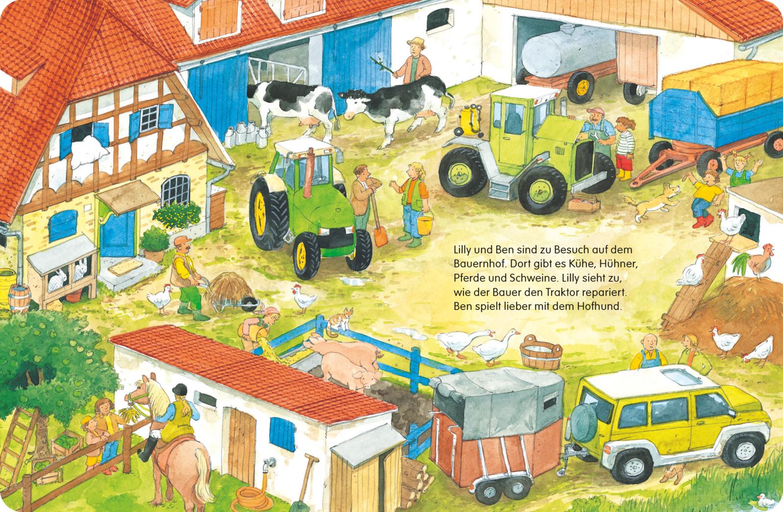 Wimmelspaß auf dem Bauernhof, mit kleiner Geschichte und Suchaufgaben: Lilly und Ben verbringen einen tollen Tag auf dem Bauernhof. Sie füttern die Hühner, helfen beim Melken der Kühe und dürfen auf dem Traktor mitfahren. Augen auf und los!