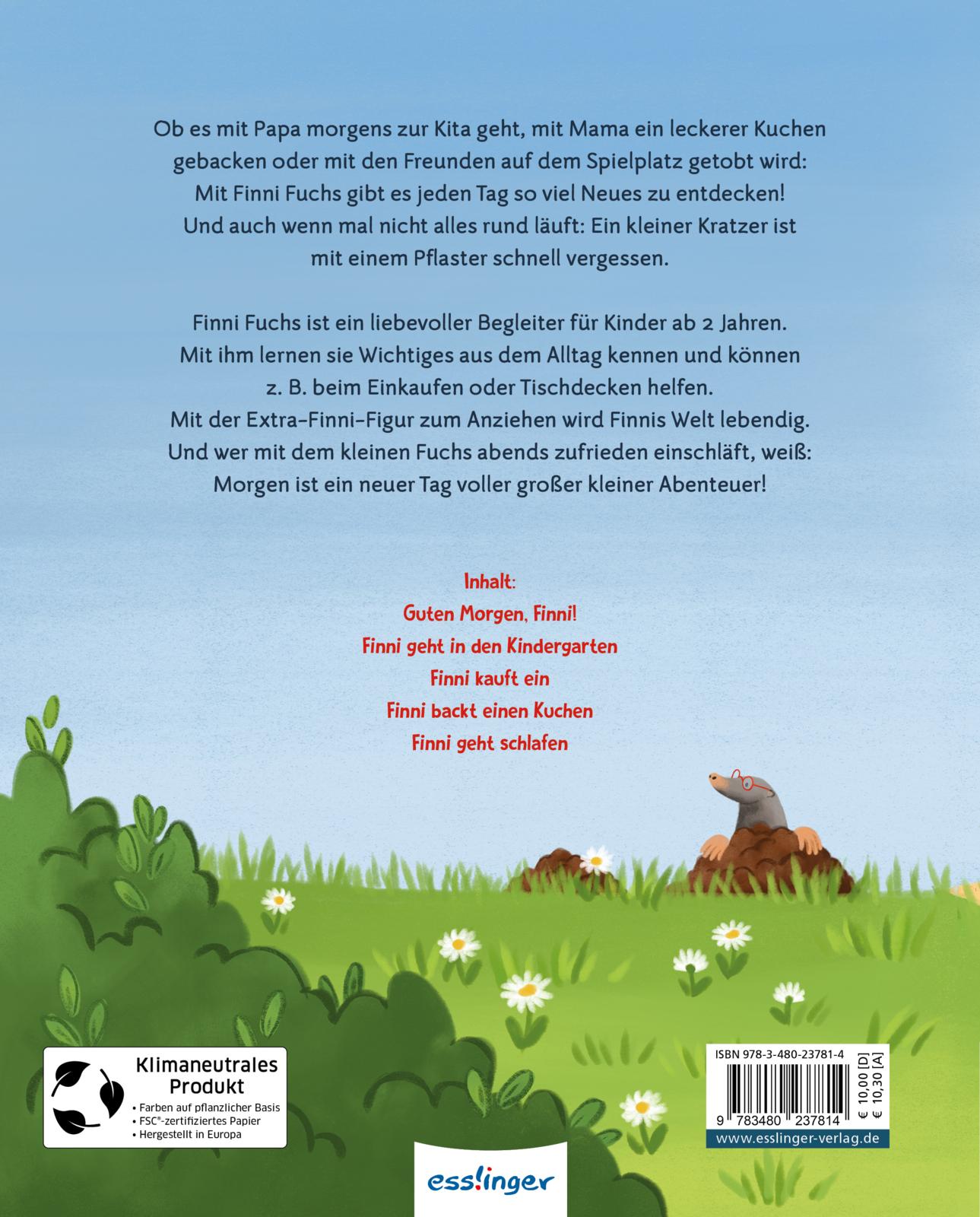 Ob es mit Papa morgens zur Kita geht, mit Mama ein leckerer Kuchen gebacken oder mit den Freunden auf dem Spielplatz getobt wird: Mit Finni Fuchs gibt es jeden Tag so viel Neues zu entdecken! Und auch wenn mal nicht alles rund läuft: Ein kleiner Kratzer ist mit einem Pflaster schnell vergessen. Und wer mit dem kleinen Fuchs abends zufrieden einschläft, weiß: Schon morgen ist ein neuer Tag voller großer kleiner Abenteuer!