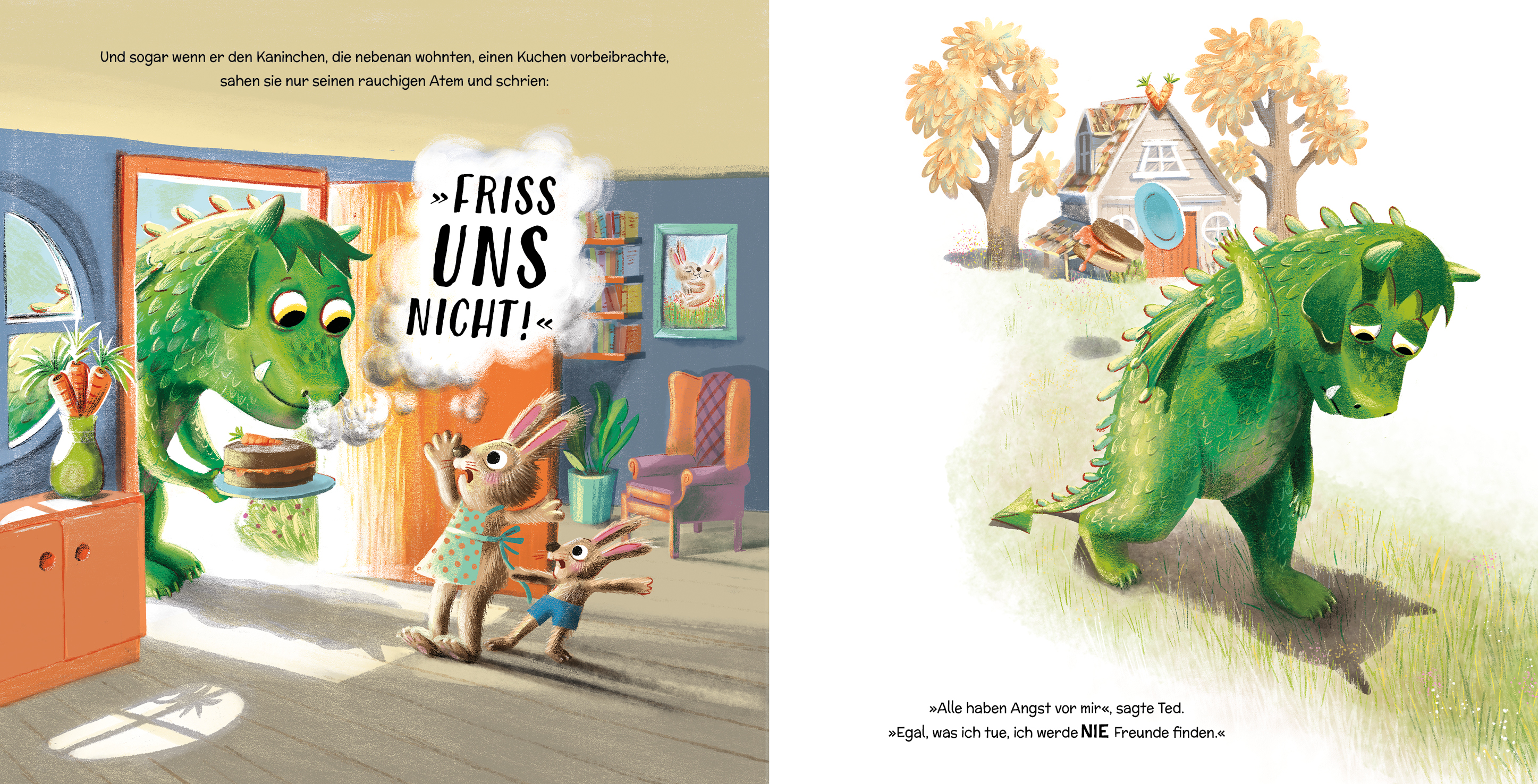 Ted, der Drache, liebt es, zu basteln und schöne Kostüme zu schneidern. Doch er fühlt sich oft allein. Denn die anderen Tiere fürchten sich vor ihm, sodass er niemanden hat, mit dem er seine Kreationen teilen kann.