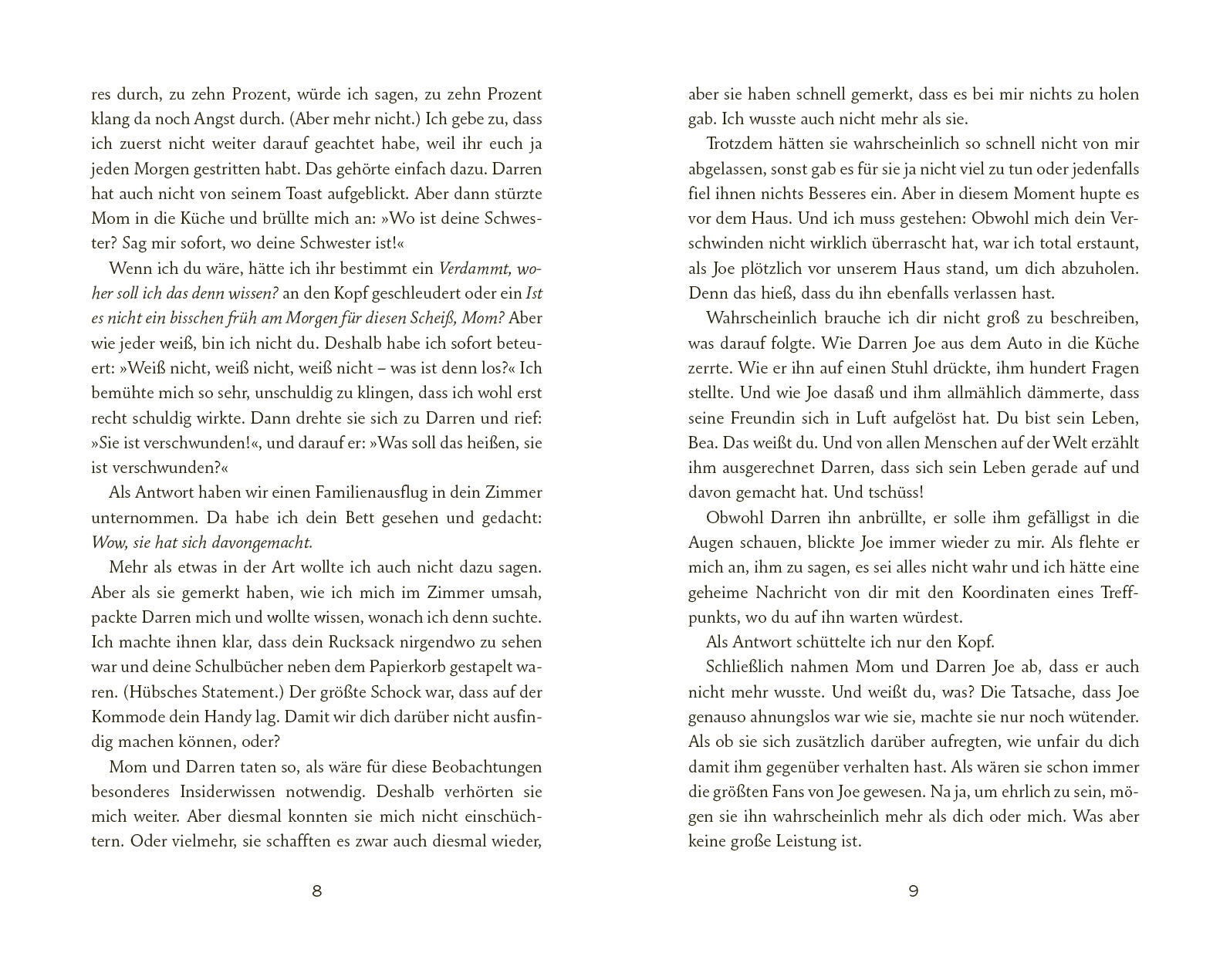 Bea weiß schon lange, dass sie von zu Hause fliehen muss. Hals über Kopf, ohne ihren jüngeren Bruder in eine fremde Stadt aufzubrechen war allerdings nie ihr Plan. Doch eine geheimnisvolle Nachricht in ihrem Postfach ändert einfach alles - und sie begibt sich auf die Suche - nach jemandem, von dem sie nicht einmal weiß, ob er je gefunden werden will.