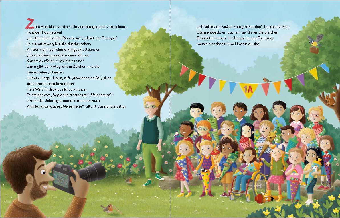 »Das farbig illustrierte Buch macht Lust auf Schule. Ob vorgelesen oder als Erstleser, ist es ein wunderschönes und interaktives Bilderbuch für alle ab 5 Jahren.«