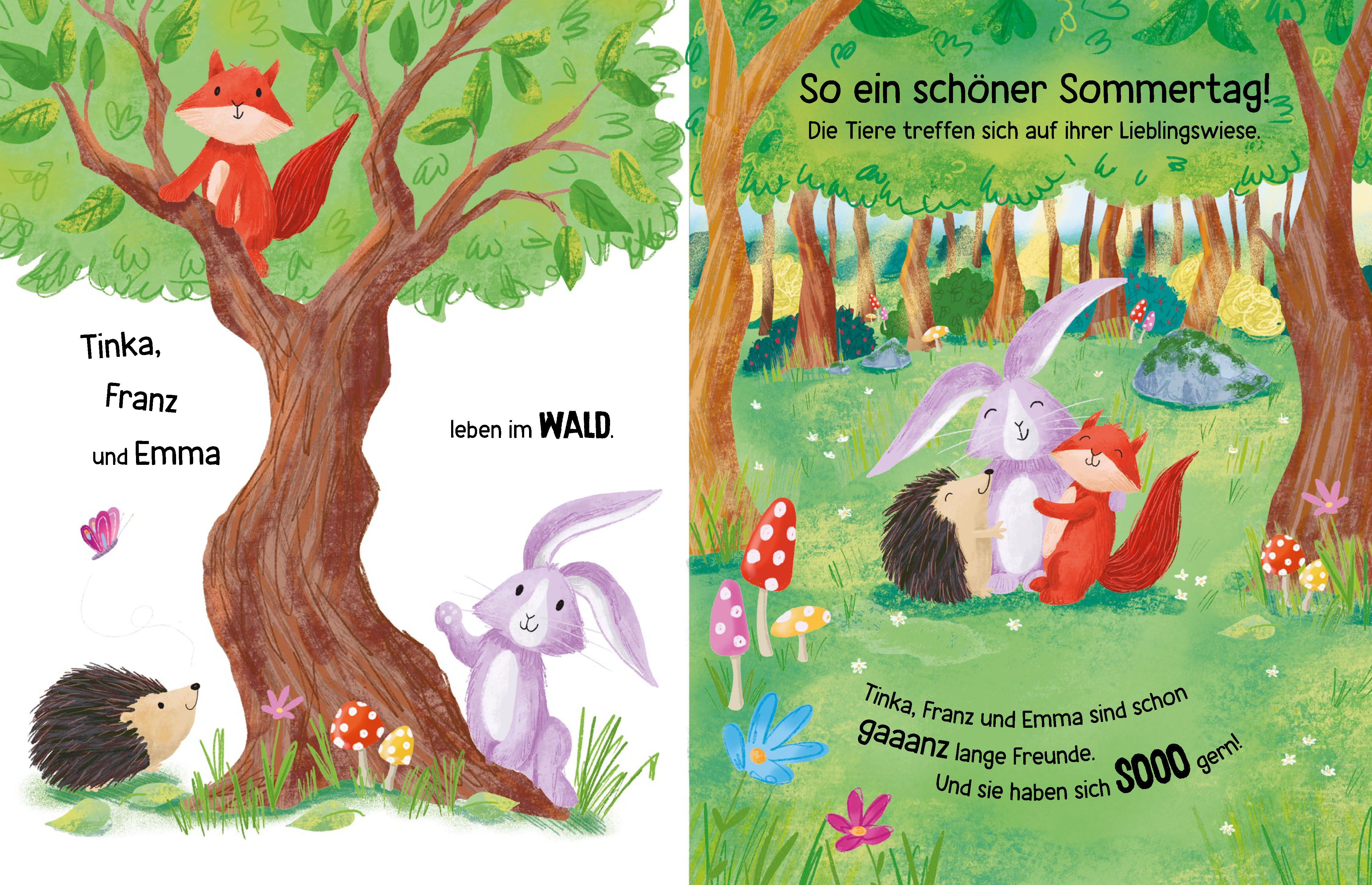 Eichhörnchen Emma, Hase Franz und Igel Tinka sind richtig gute Freunde. Die drei kennen sich schon lange und haben sehr viel gemeinsam. Doch plötzlich taucht ein neuer Waldbewohner auf: der große Bär Peppo. Der Bär möchte ihr Freund werden und auch mit ihnen spielen. Ein so großer Bär, der passt doch gar nicht zu uns, denken sich die Freunde. Oder vielleicht doch?